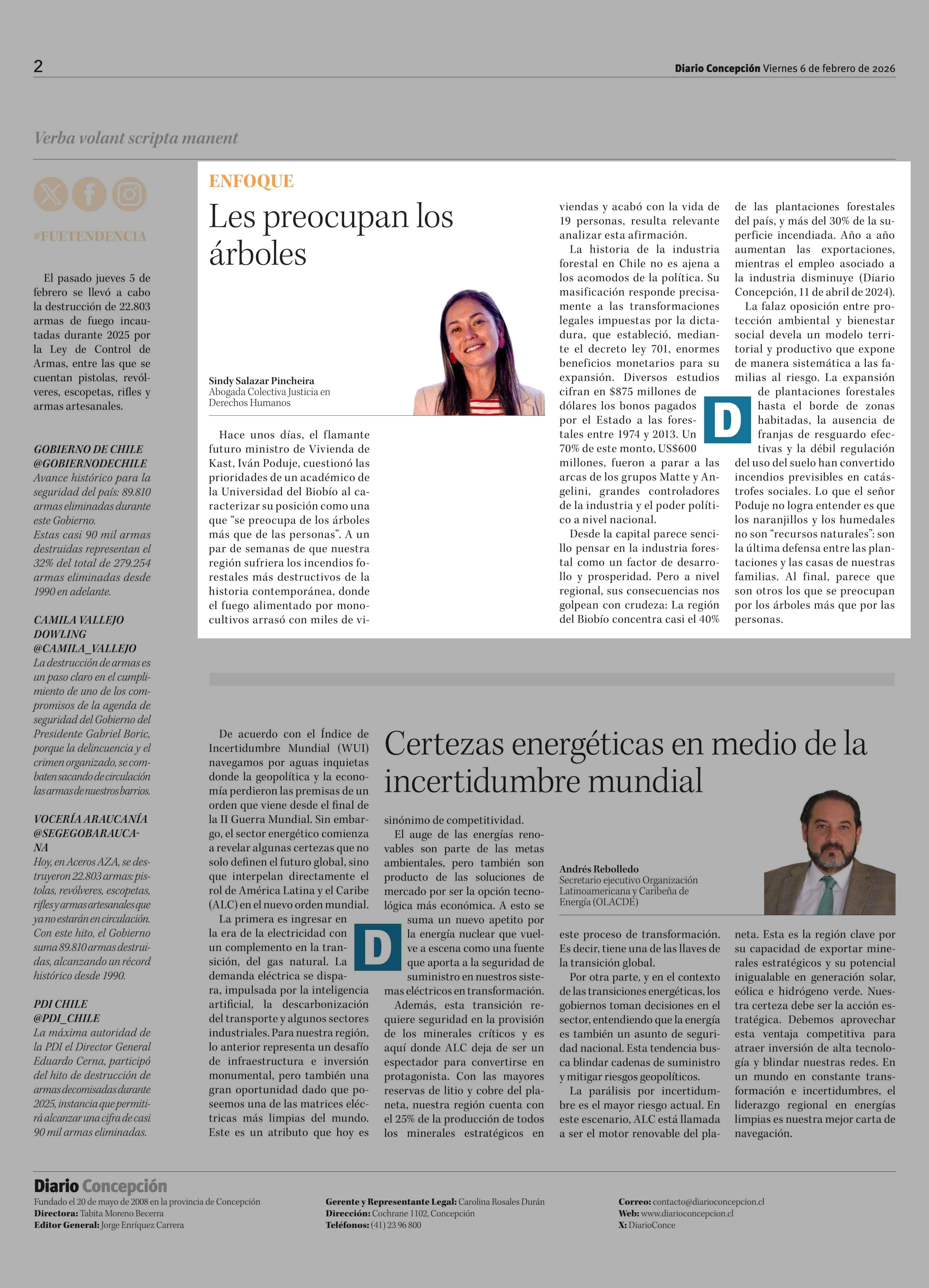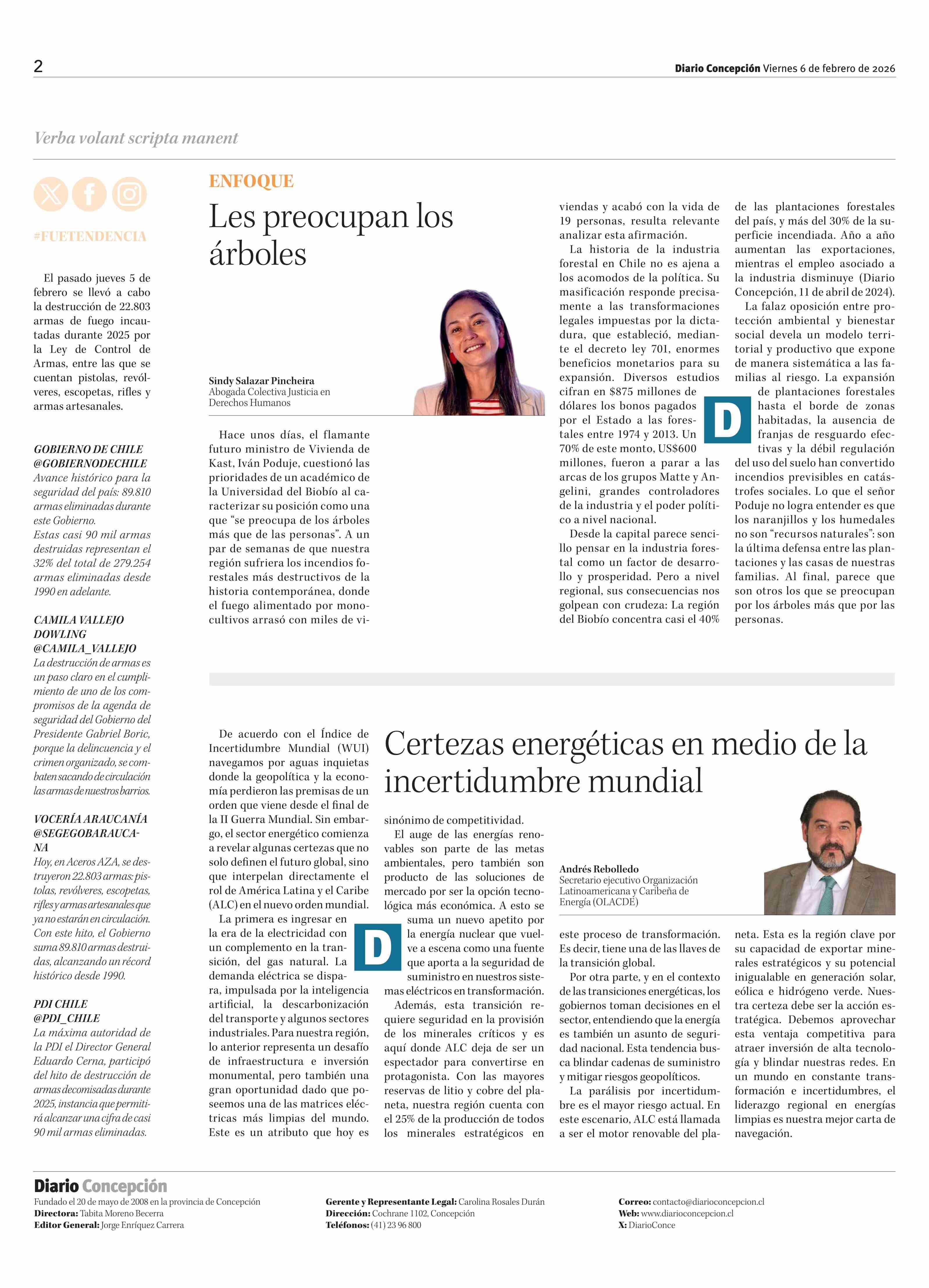 Columnas de Opinión: Les preocupan los árboles 06-02-2026 Diario Concepción |