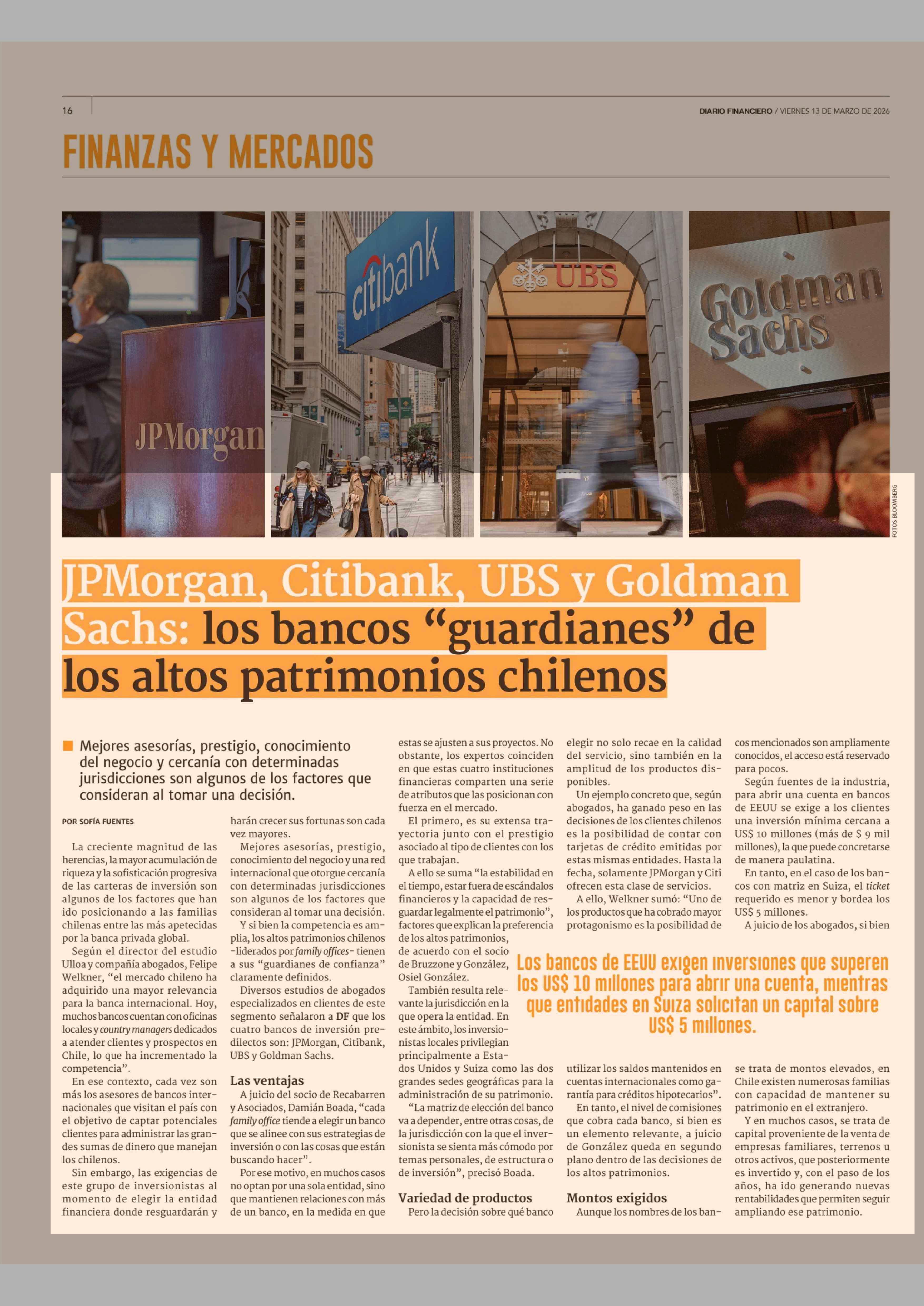 Título: JPMorgan, Citibank, UBS y Goldman Sachs: los bancos "guardianes" de los altos patrimonios chilenos
