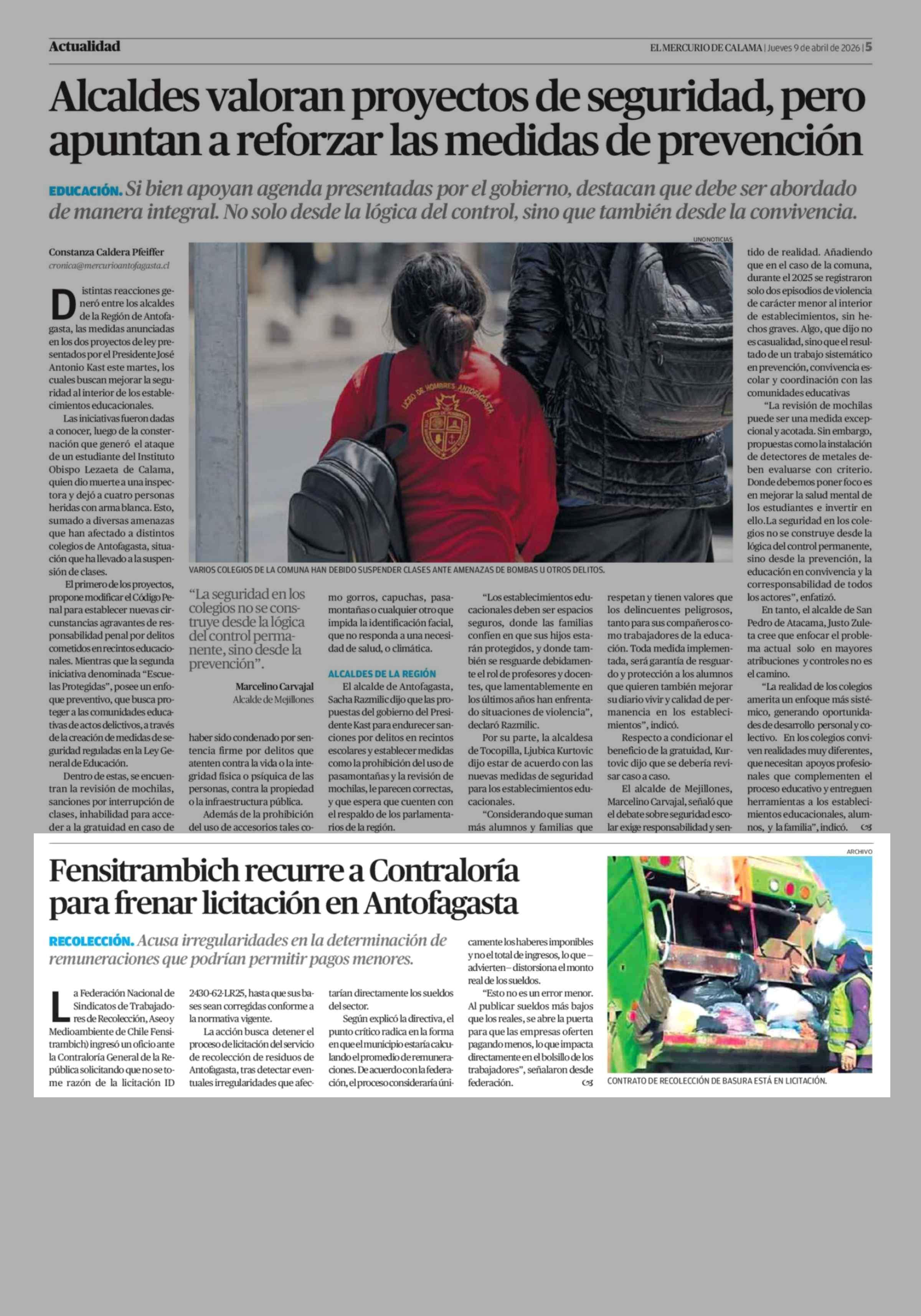 Fensitrambich recurre a Contraloría para frenar licitación en Antofagasta 09-04-2026 El Mercurio de Calama |