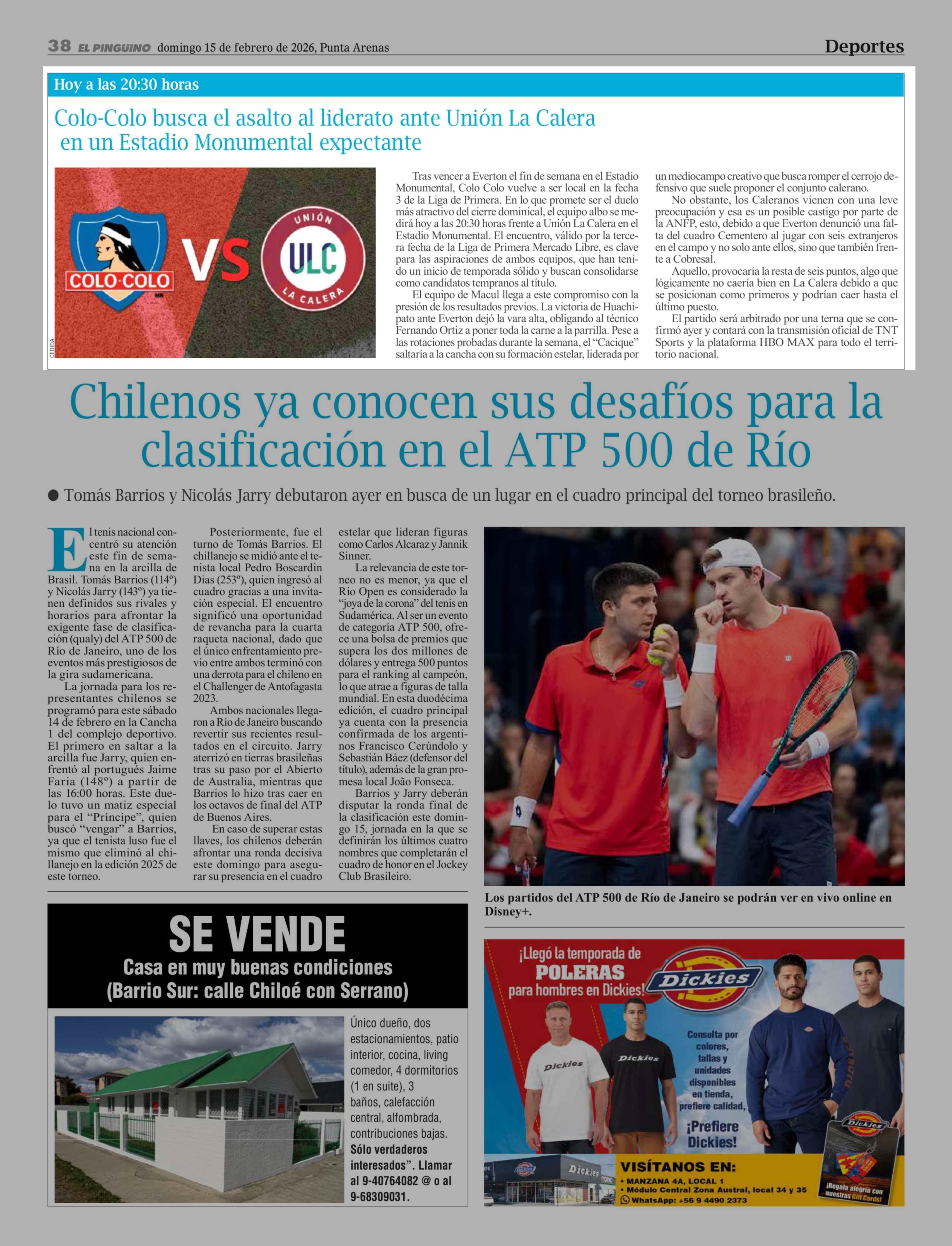 Colo-Colo busca el asalto al liderato ante Unión La Calera en un Estadio Monumental expectante 15-02-2026 El Pingüino |