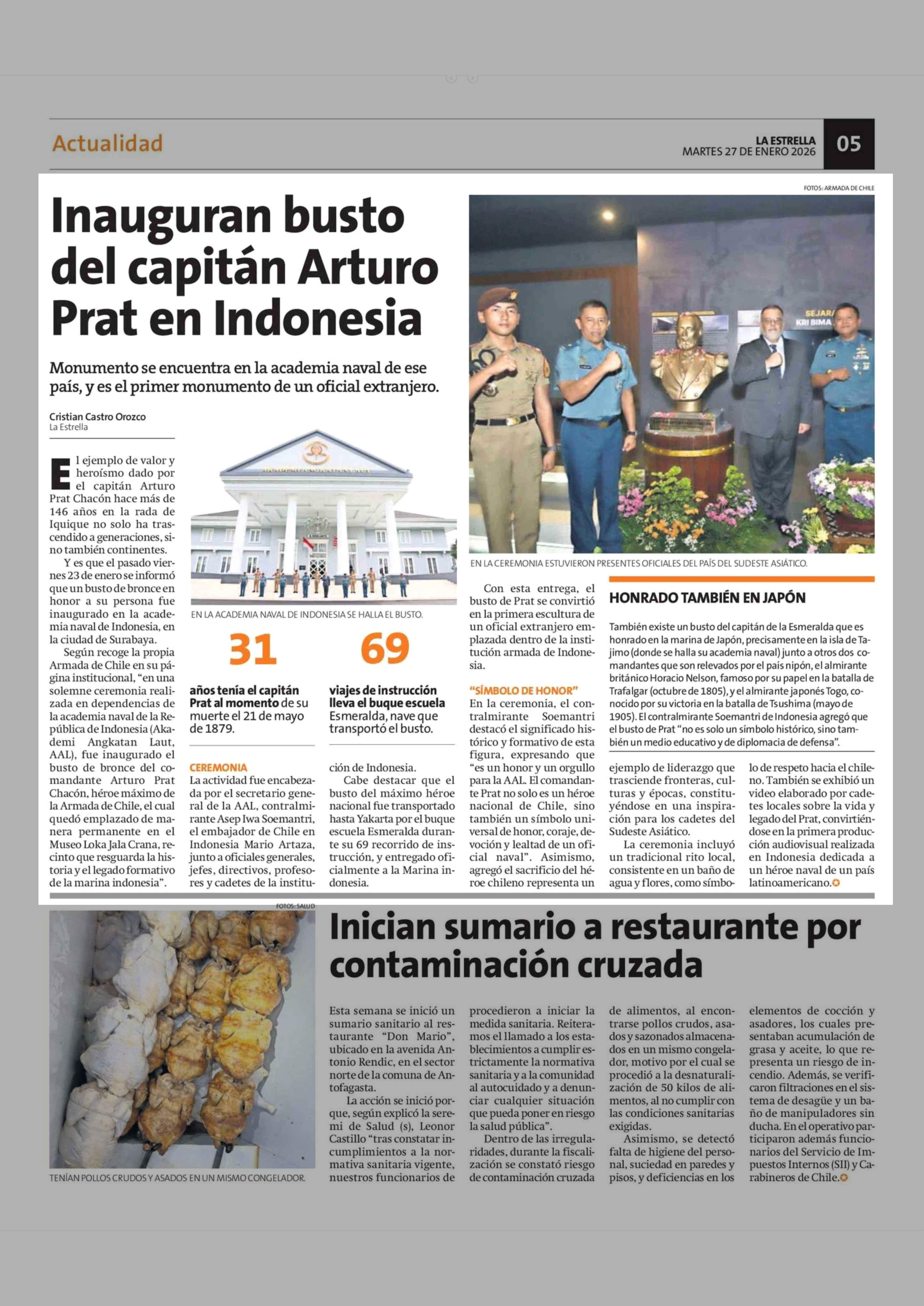 Título: Inauguran busto del capitán Arturo Prat en Indonesia