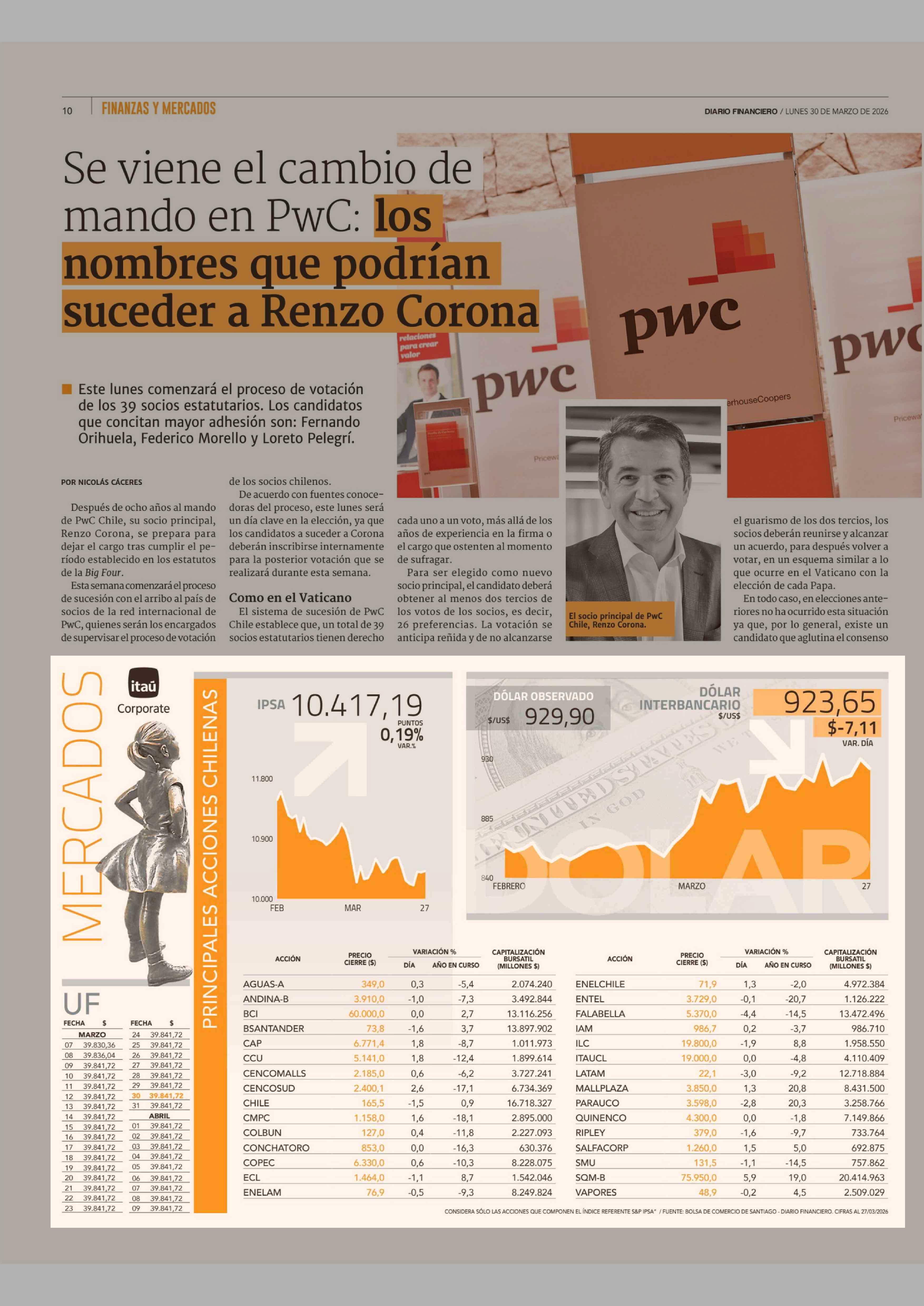 Fuente: Diario Financiero (Diario Financiero) Página(s): 10