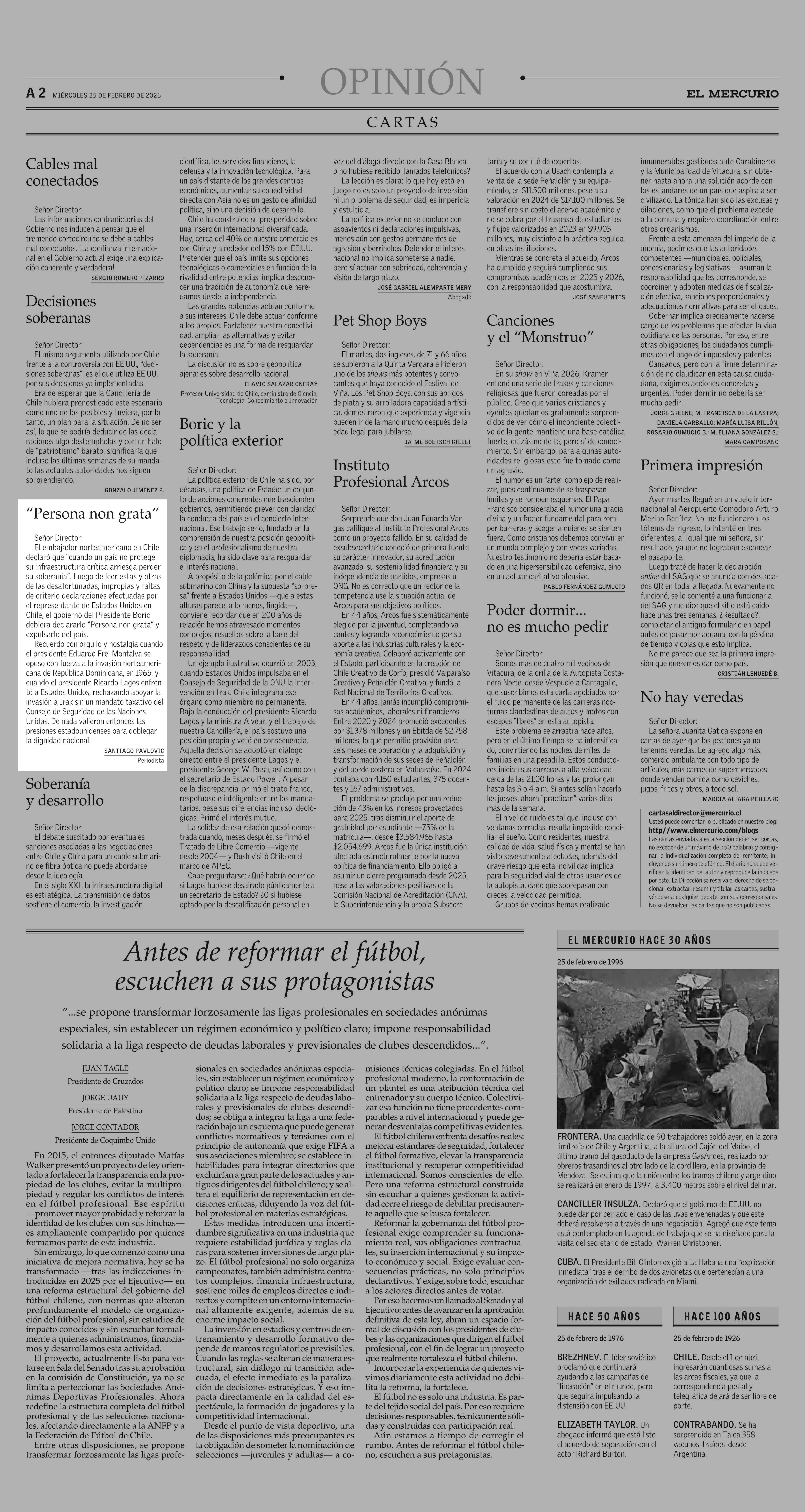 Cartas: “Persona non grata” 25-02-2026 El Mercurio |