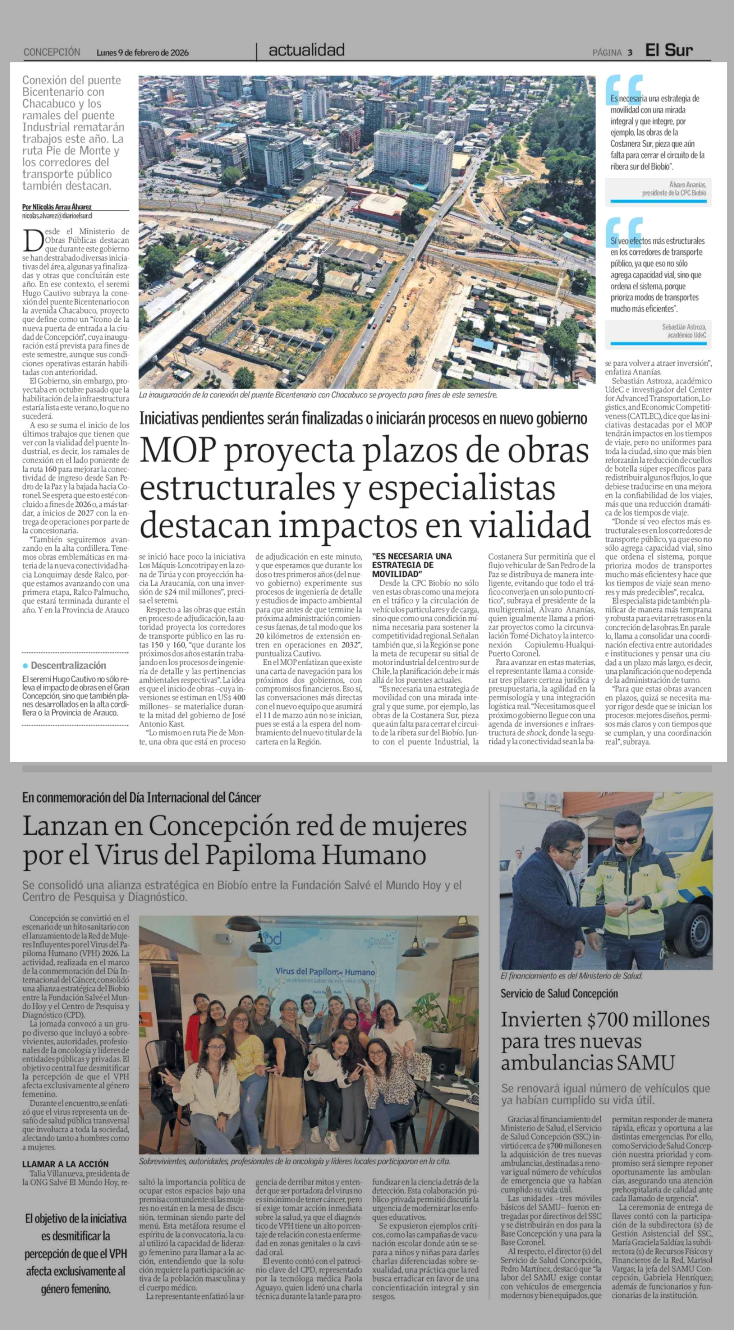 MOP proyecta plazos de obras estructurales y especialistas destacan impactos en vialidad 09-02-2026 El Sur |