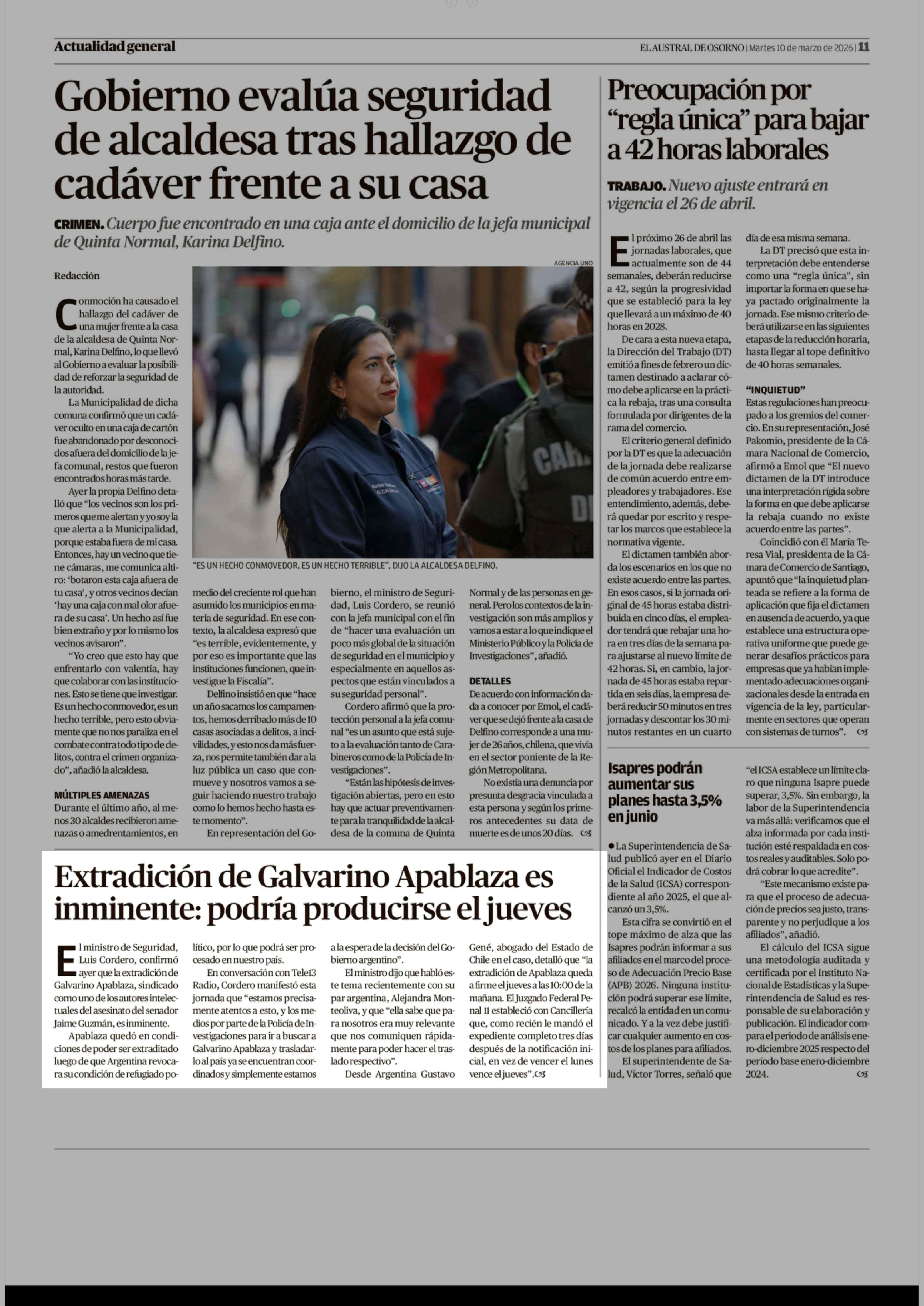 Extradición de Galvarino Apablaza es inminente: podría producirse el jueves 10-03-2026 El Austral de Osorno |