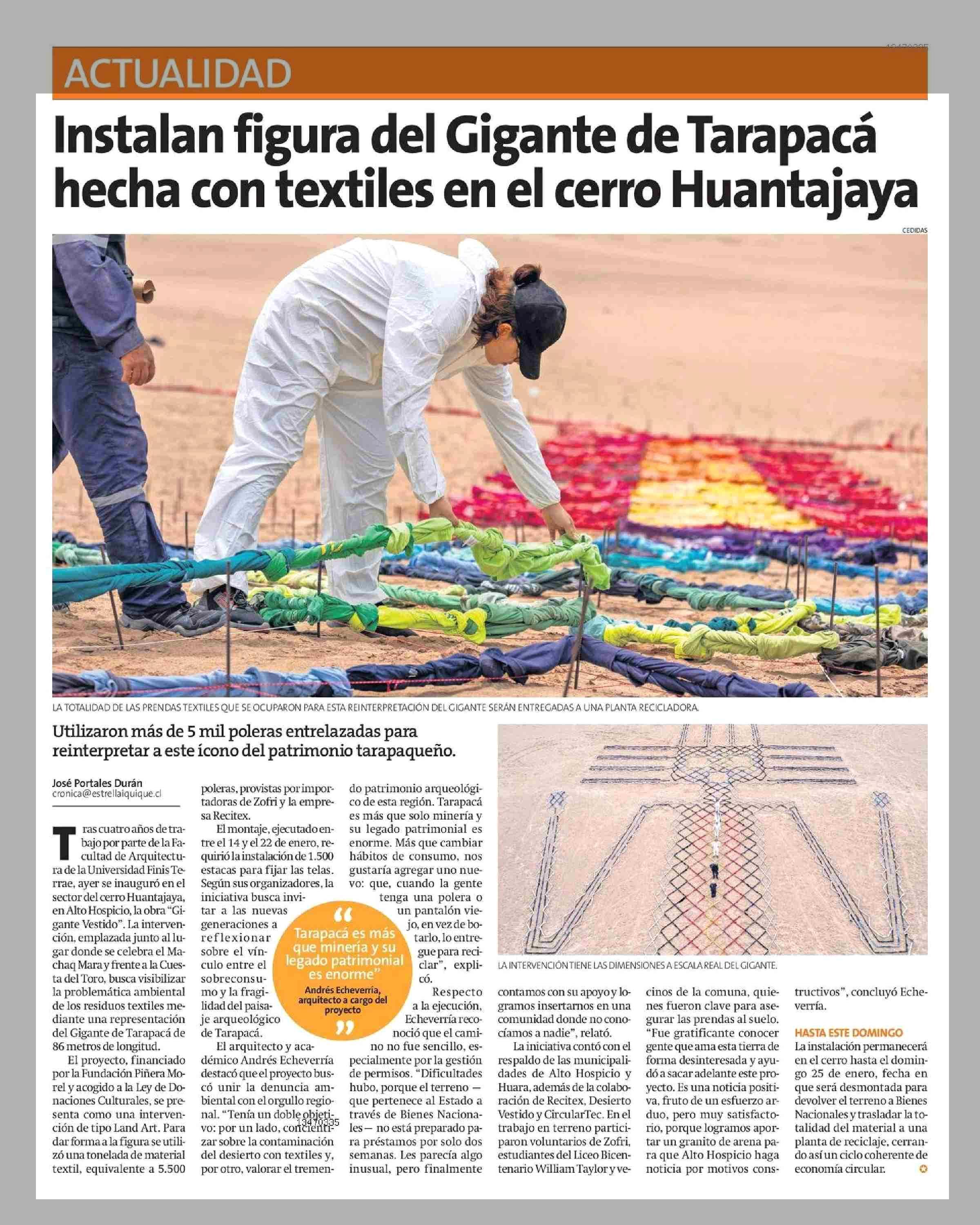 Instalan figura del Gigante de Tarapacá hecha con textiles en el cerro Huantajaya 24-01-2026 La Estrella de Iquique |