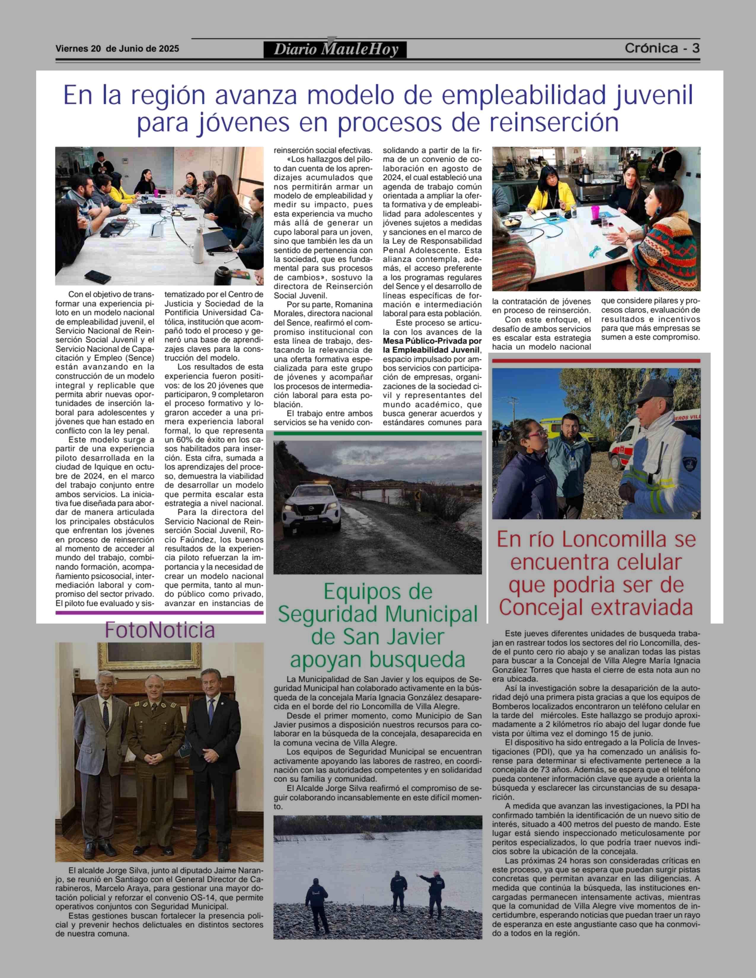 | Fecha: | 20-06-2025 | Sector: | Noticia general | Región: | Región del Maule |