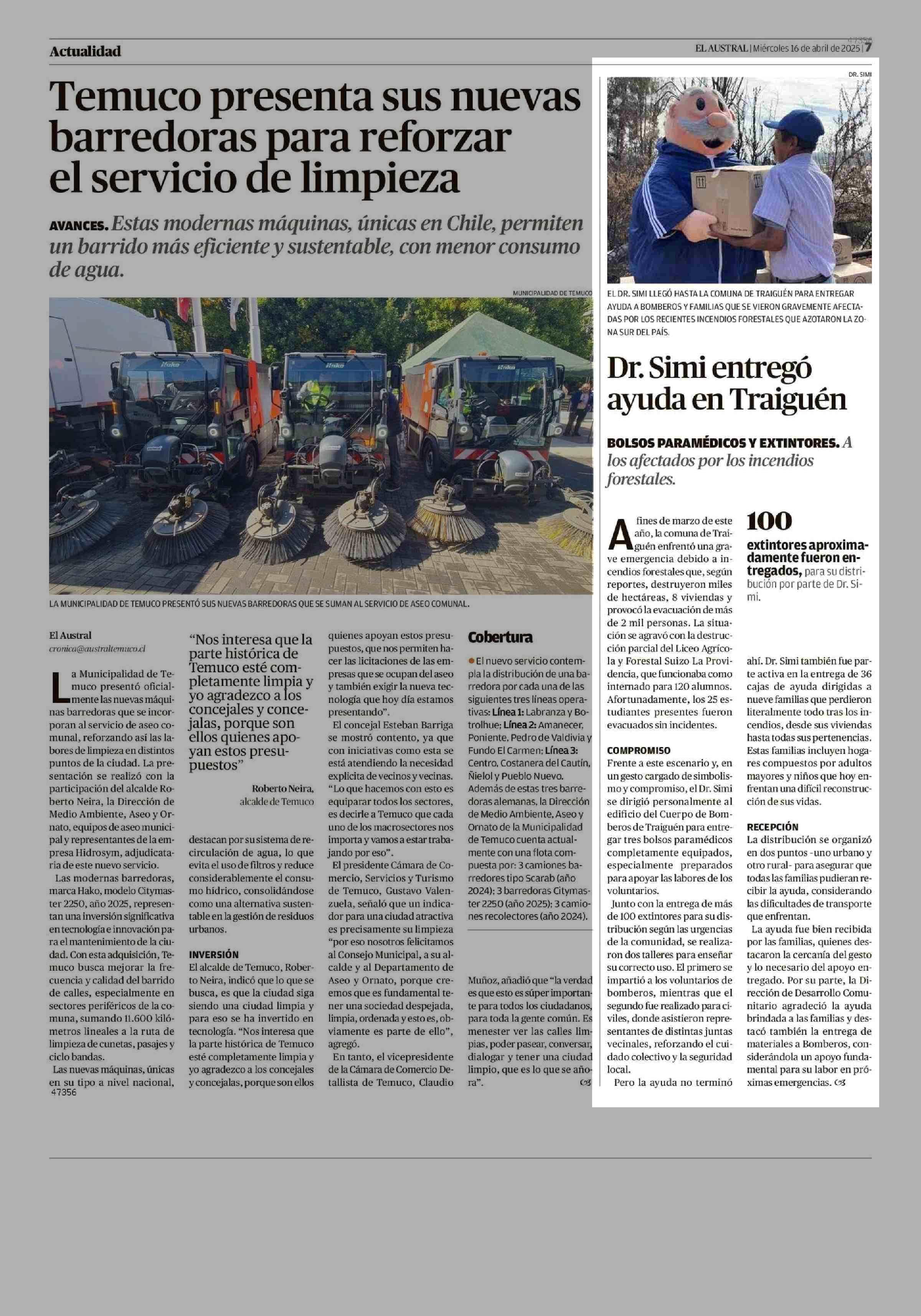 Dr. Simi entregó ayuda en Traiguén 16-04-2025 El Austral de la Araucanía |