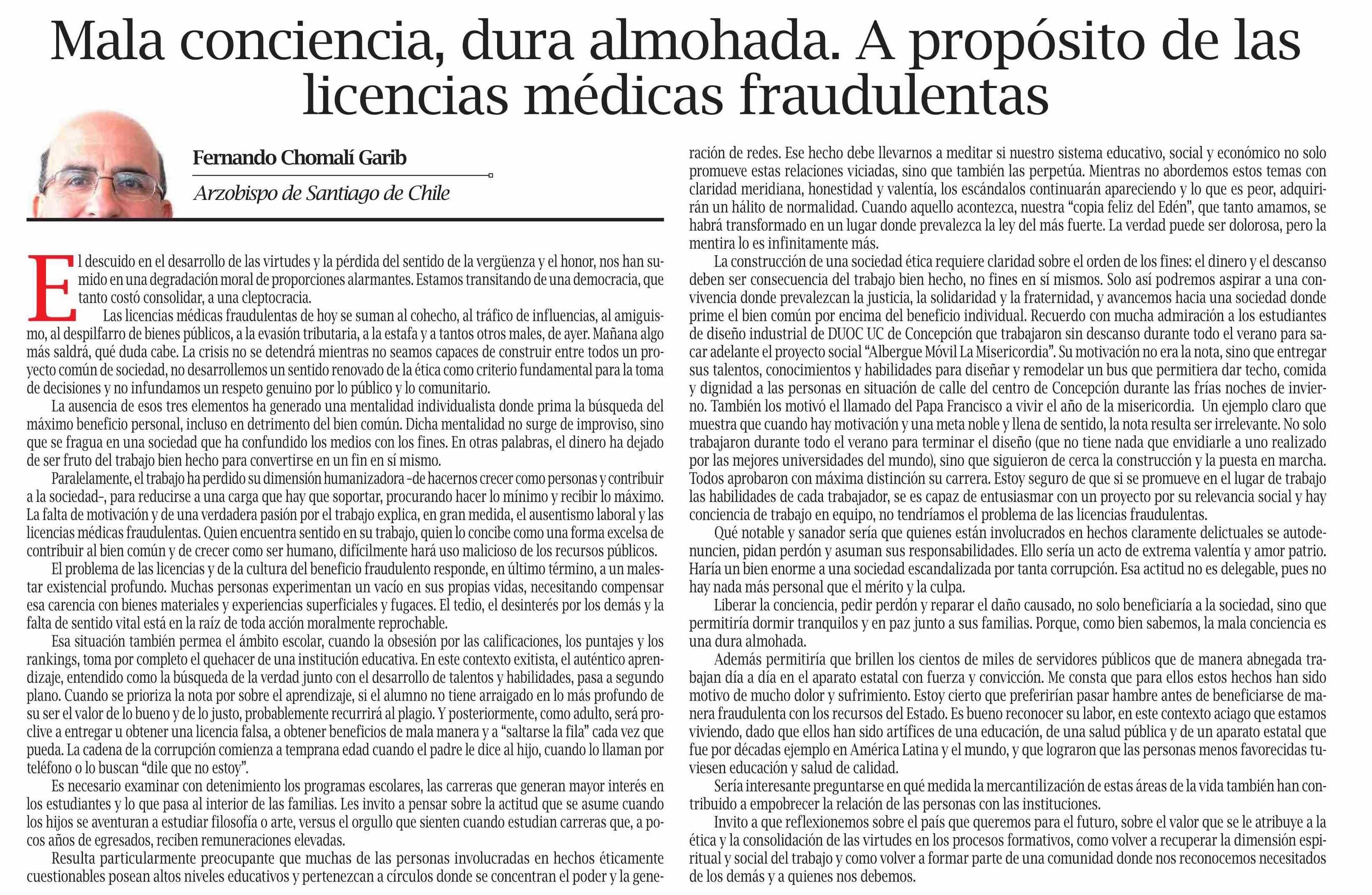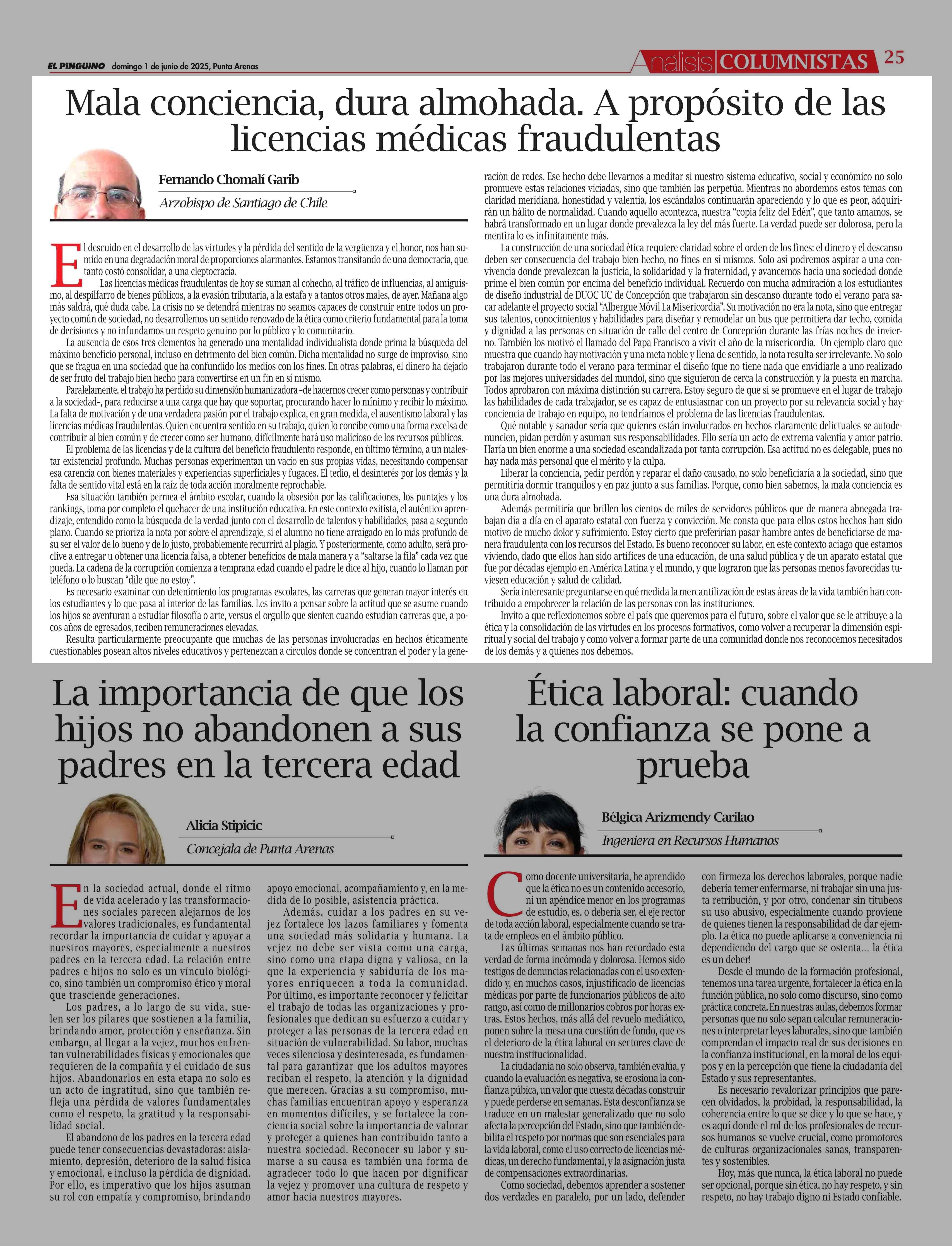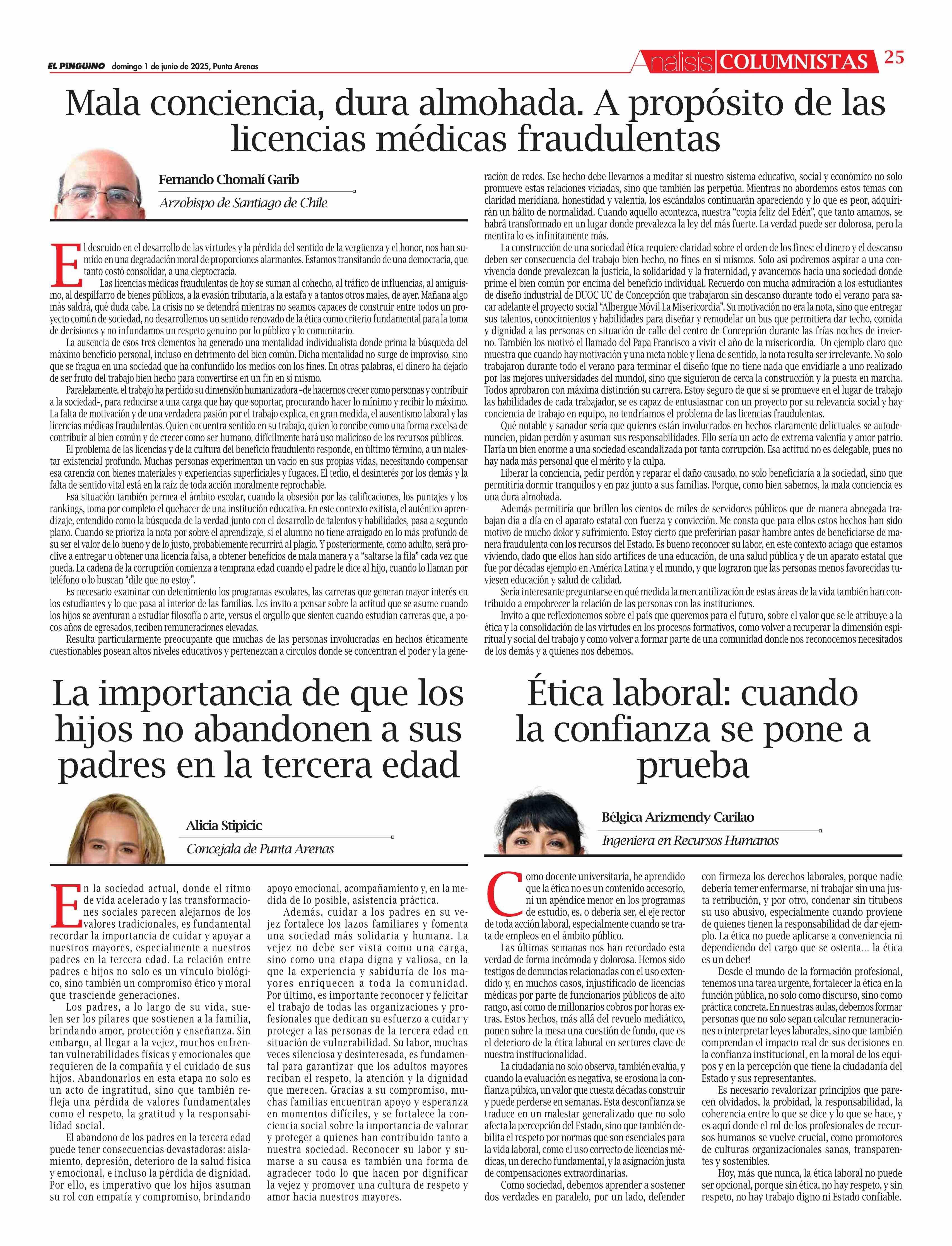 Mala conciencia, dura almohada. A propósito de las licencias médicas fraudulentas 01-06-2025 El Pingüino |