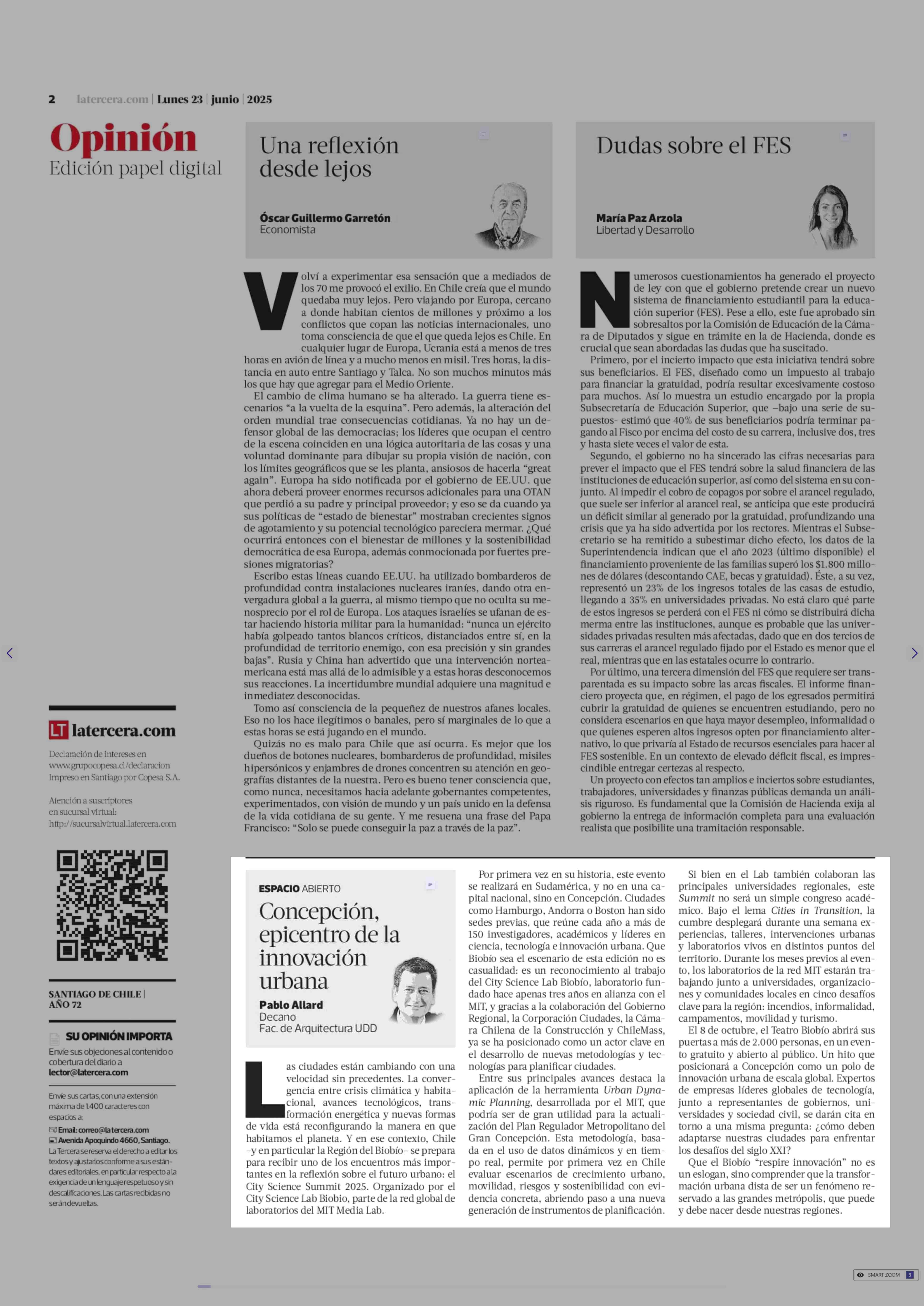 Columnas de Opinión: Concepción, epicentro de la innovación urbana 23-06-2025 La Tercera |