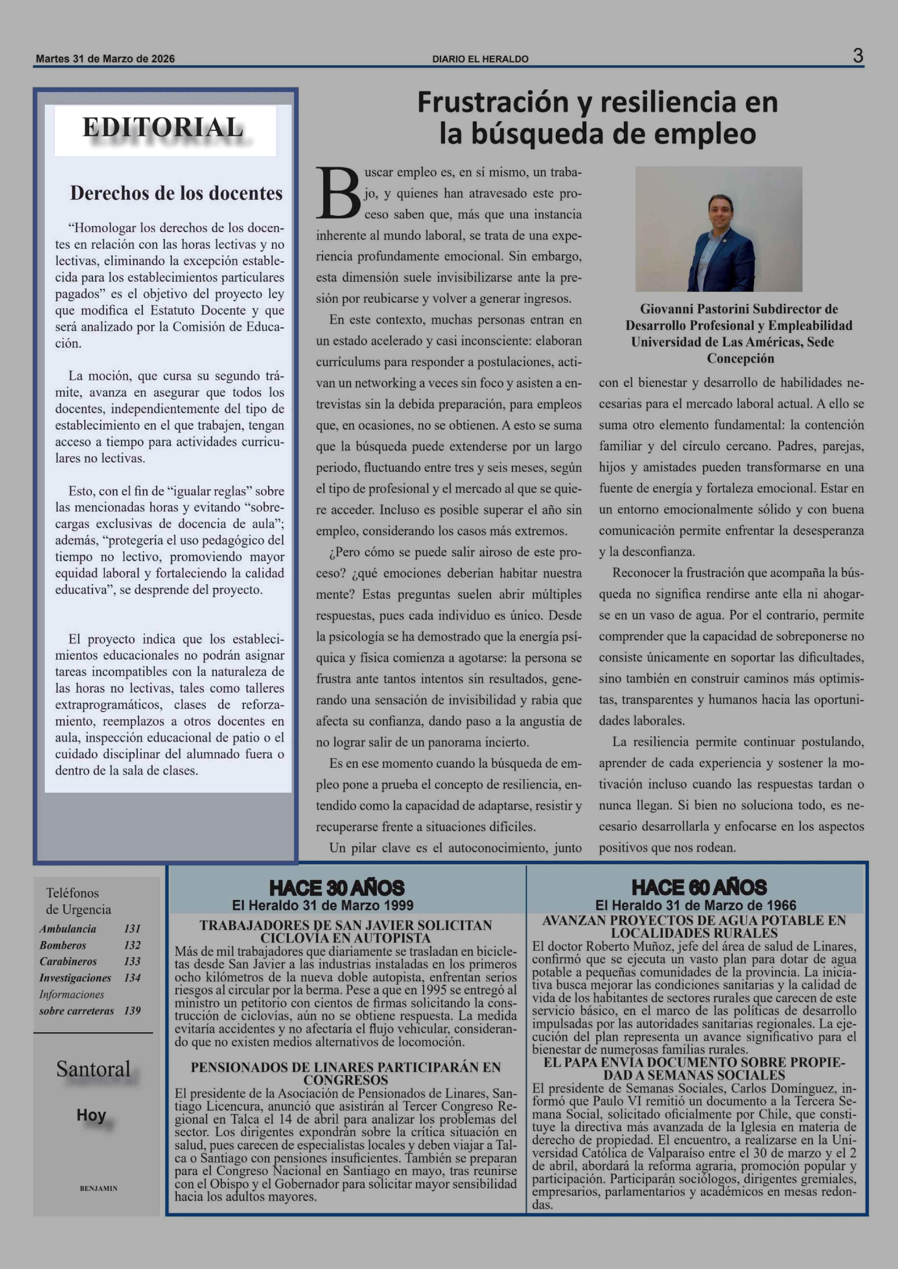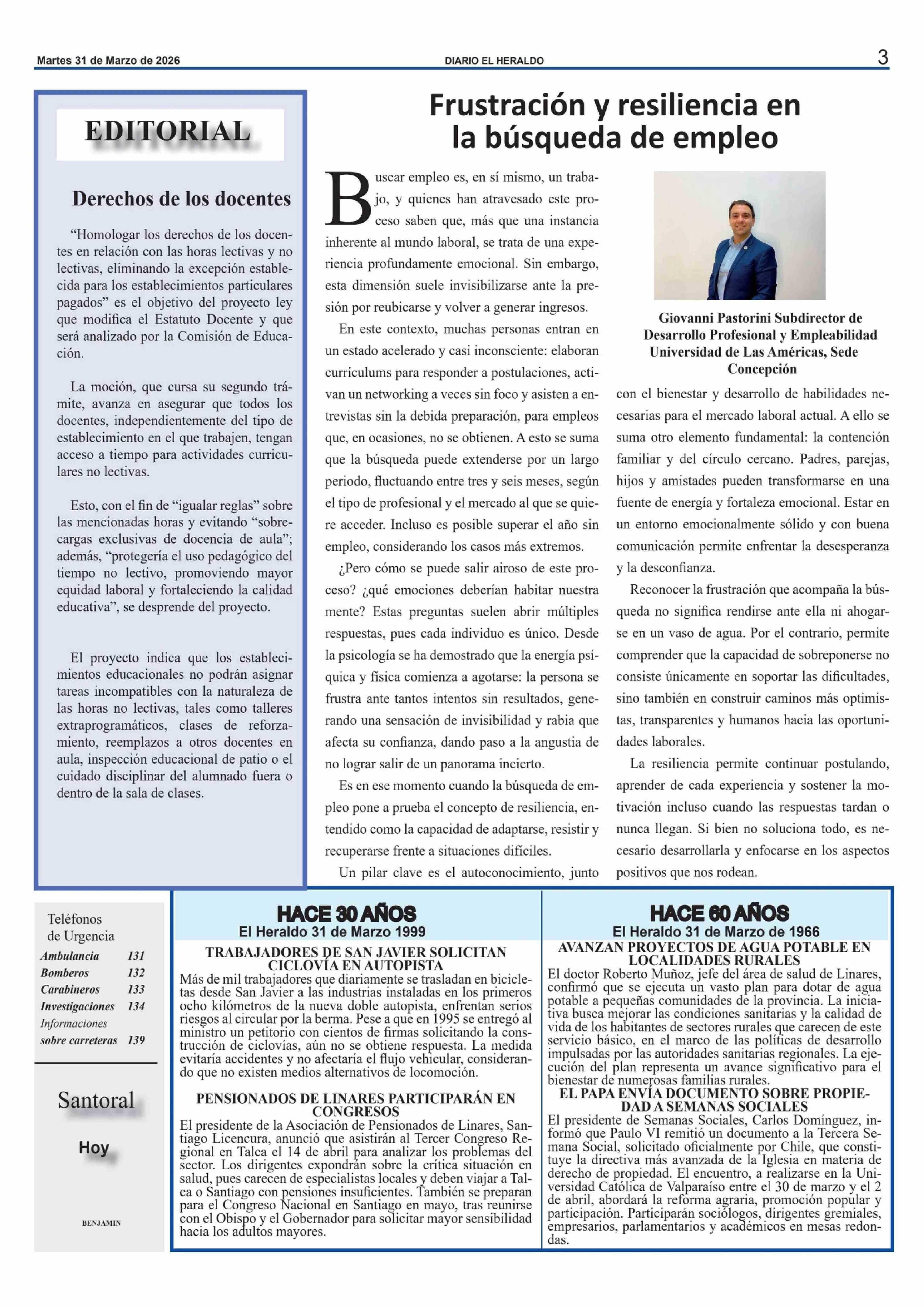 Editorial: Derechos de los docentes 31-03-2026 El Heraldo |