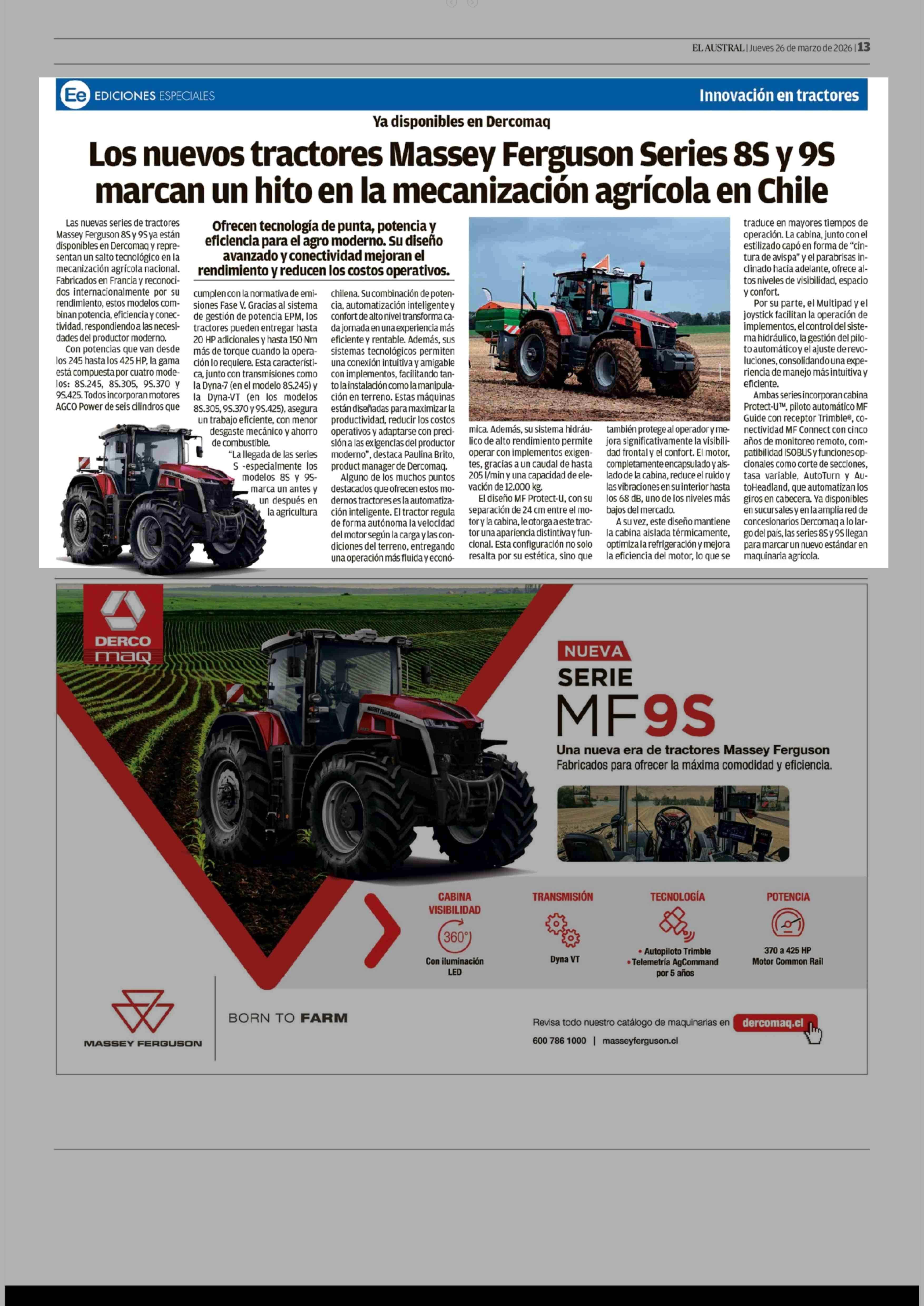 Título: Los nuevos tractores Massey Ferguson Series 8S y 9S marcan un hito en la mecanización agrícola en Chile