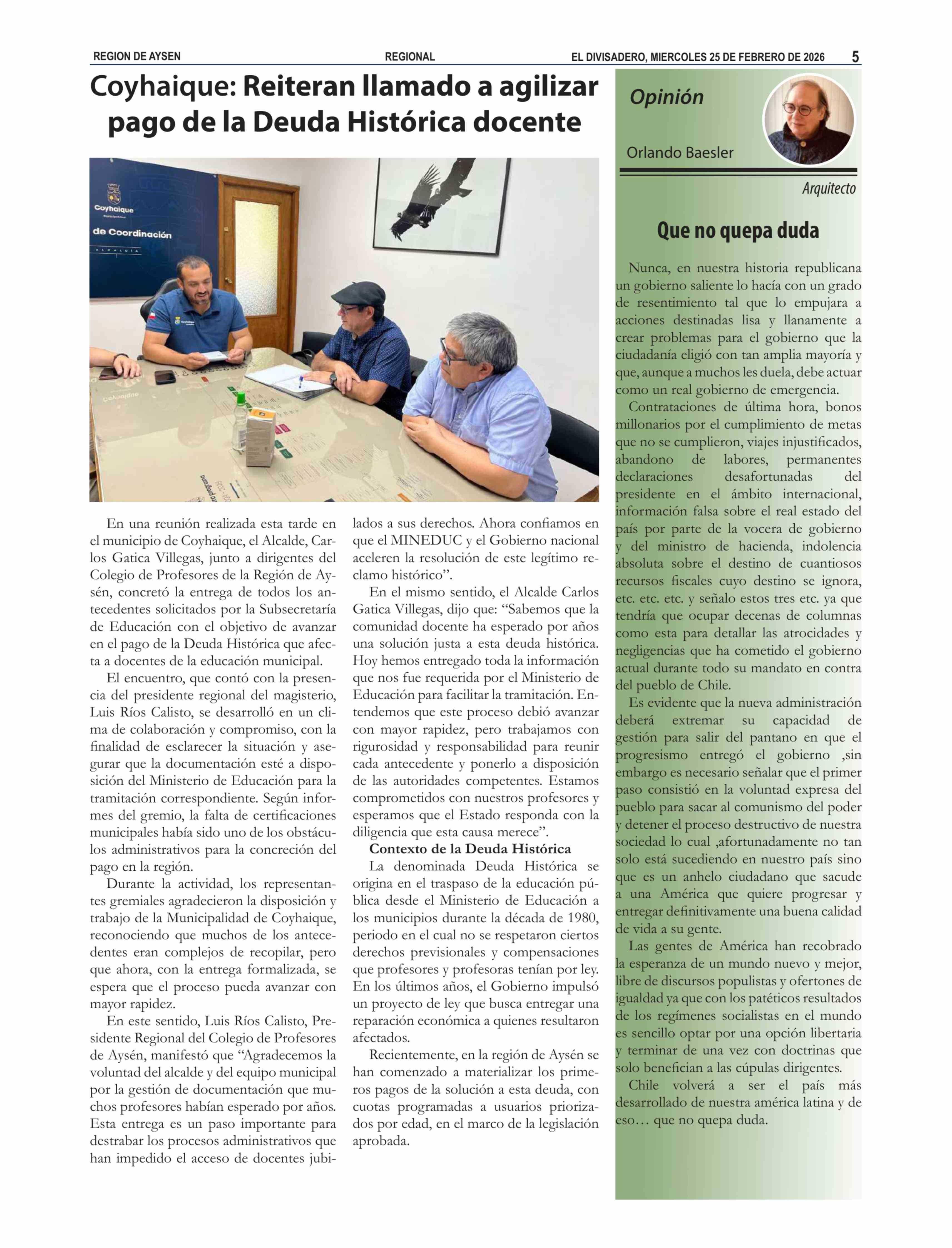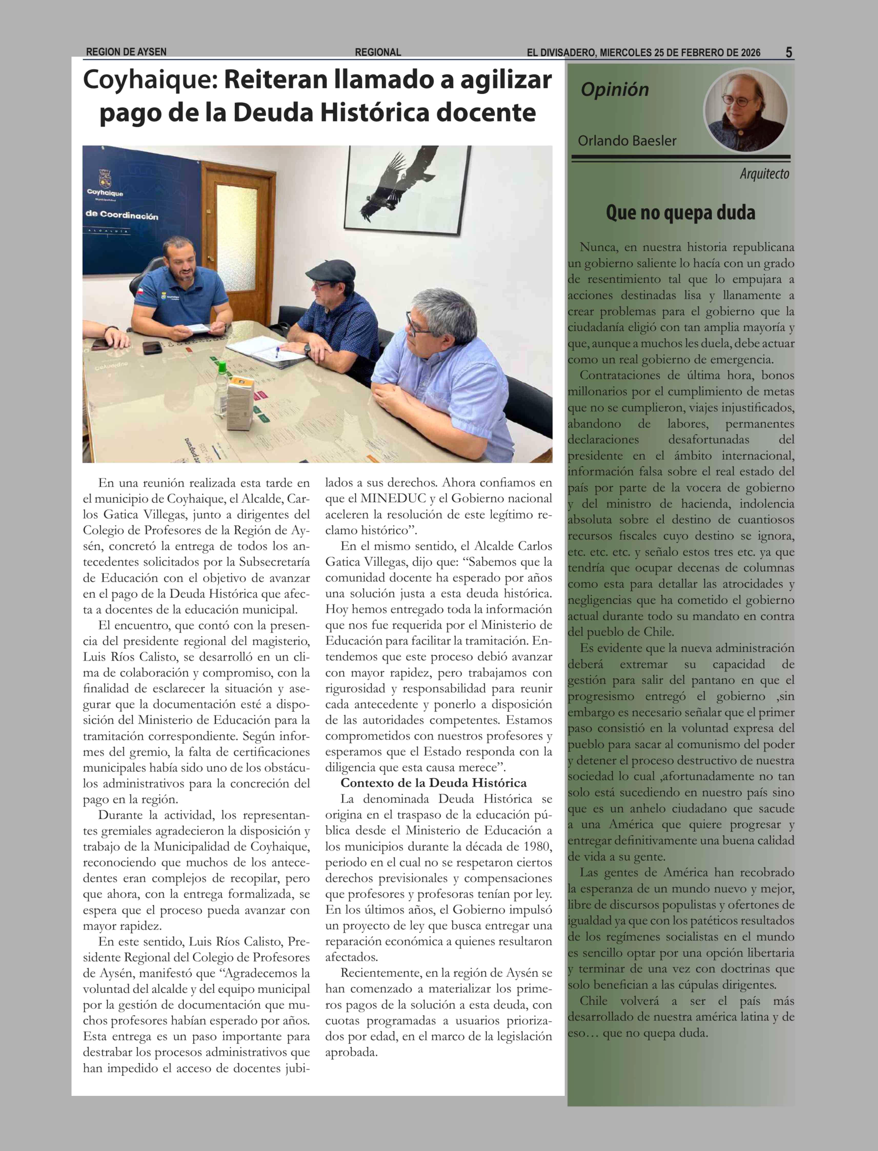 Título: Coyhaique: Reiteran llamado a agilizar pago de la Deuda Histórica docente