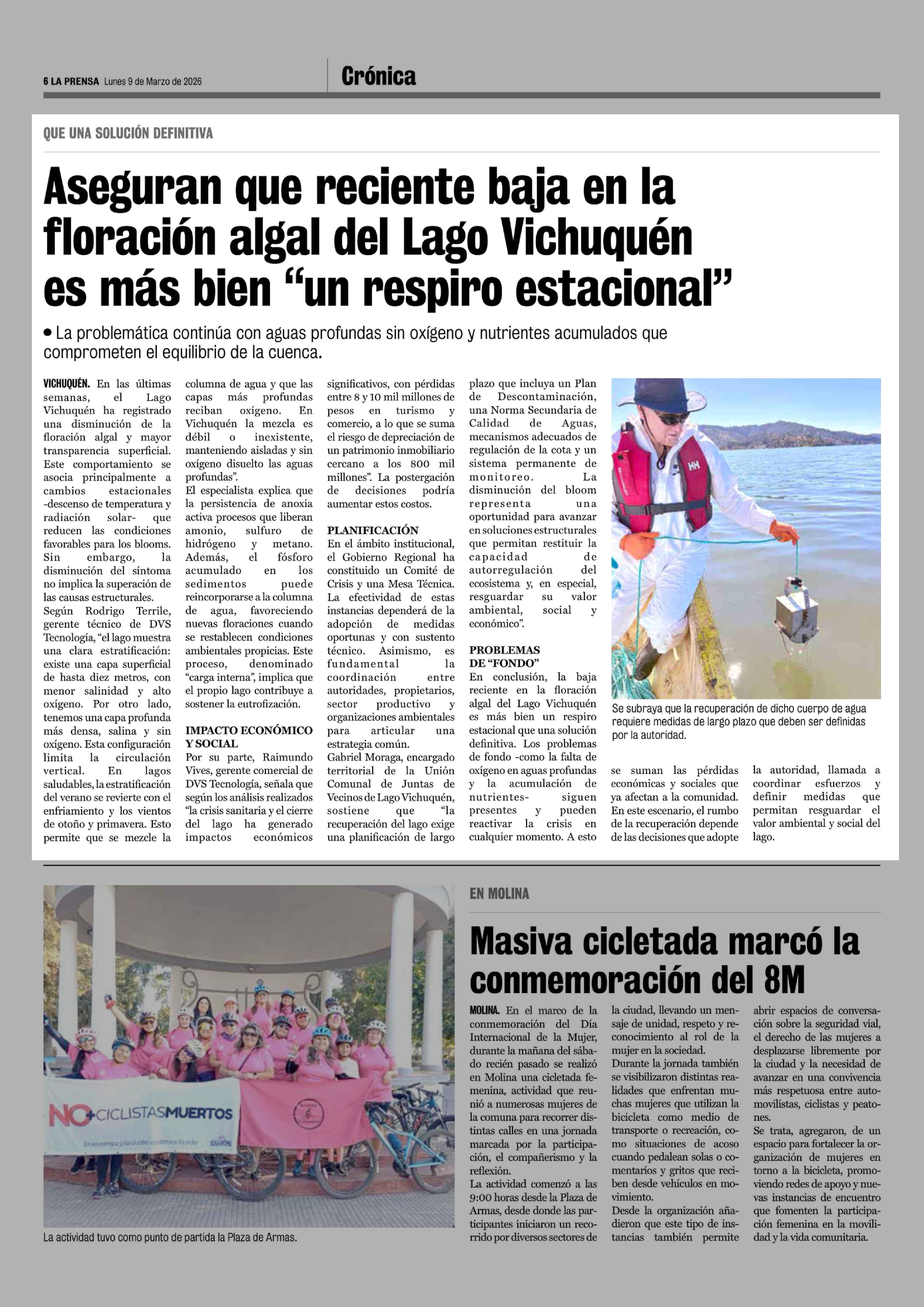 Aseguran que reciente baja en la floración algal del Lago Vichuquen es más bien "un respiro estacional" 09-03-2026 La Prensa de Curicó |