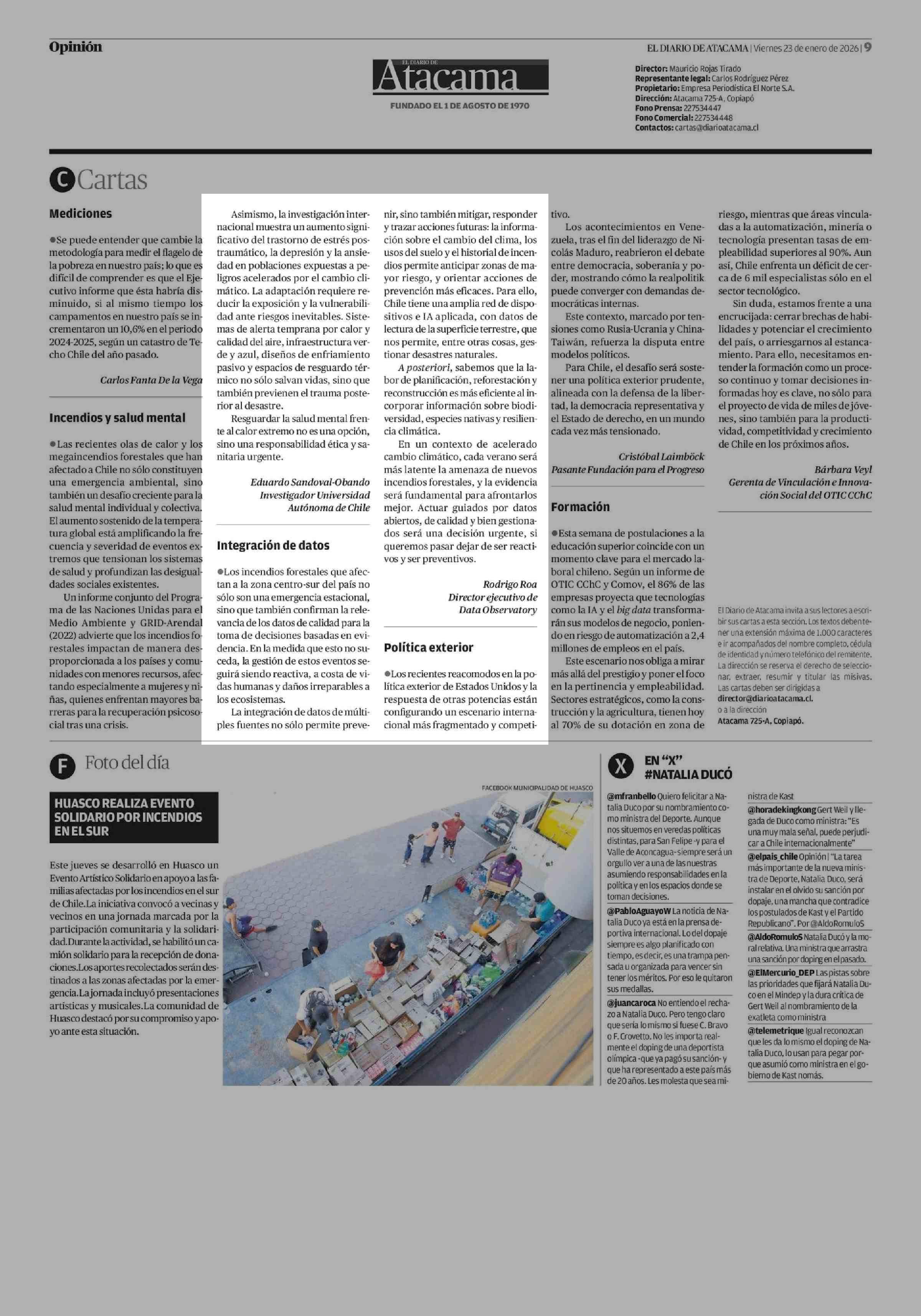 Cartas: Integración de datos 23-01-2026 El Diario de Atacama |