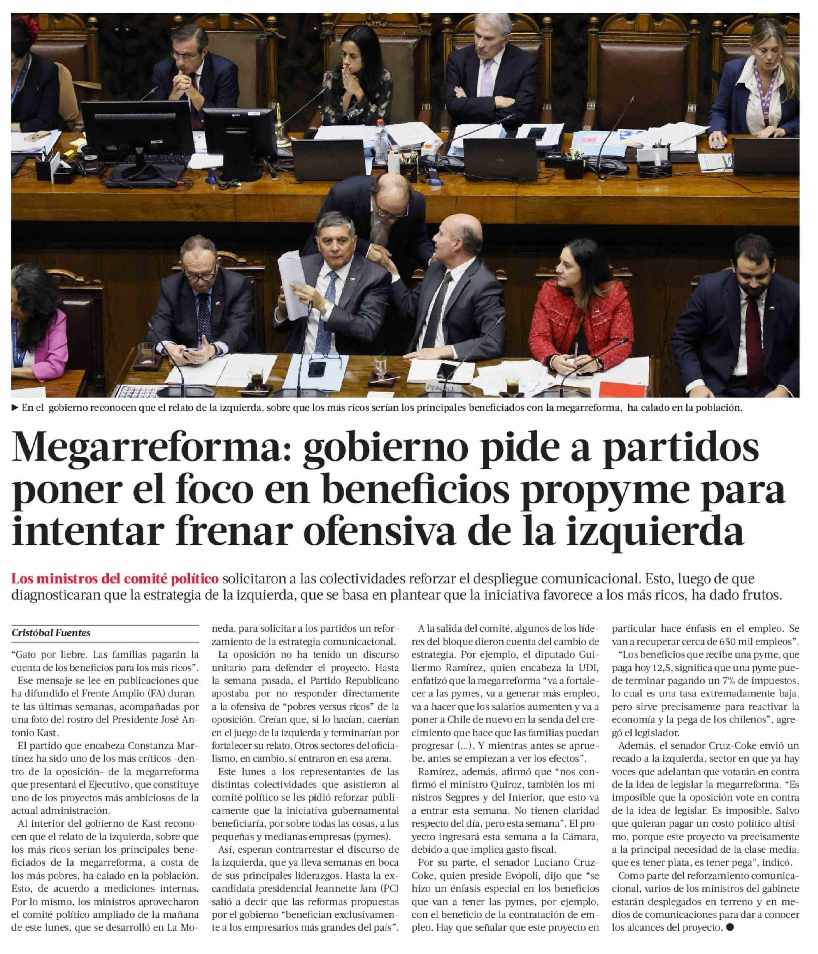 Título: Megarreforma: gobierno pide a partidos poner el foco en beneficios propyme para intentar frenar ofensiva de la izquierda