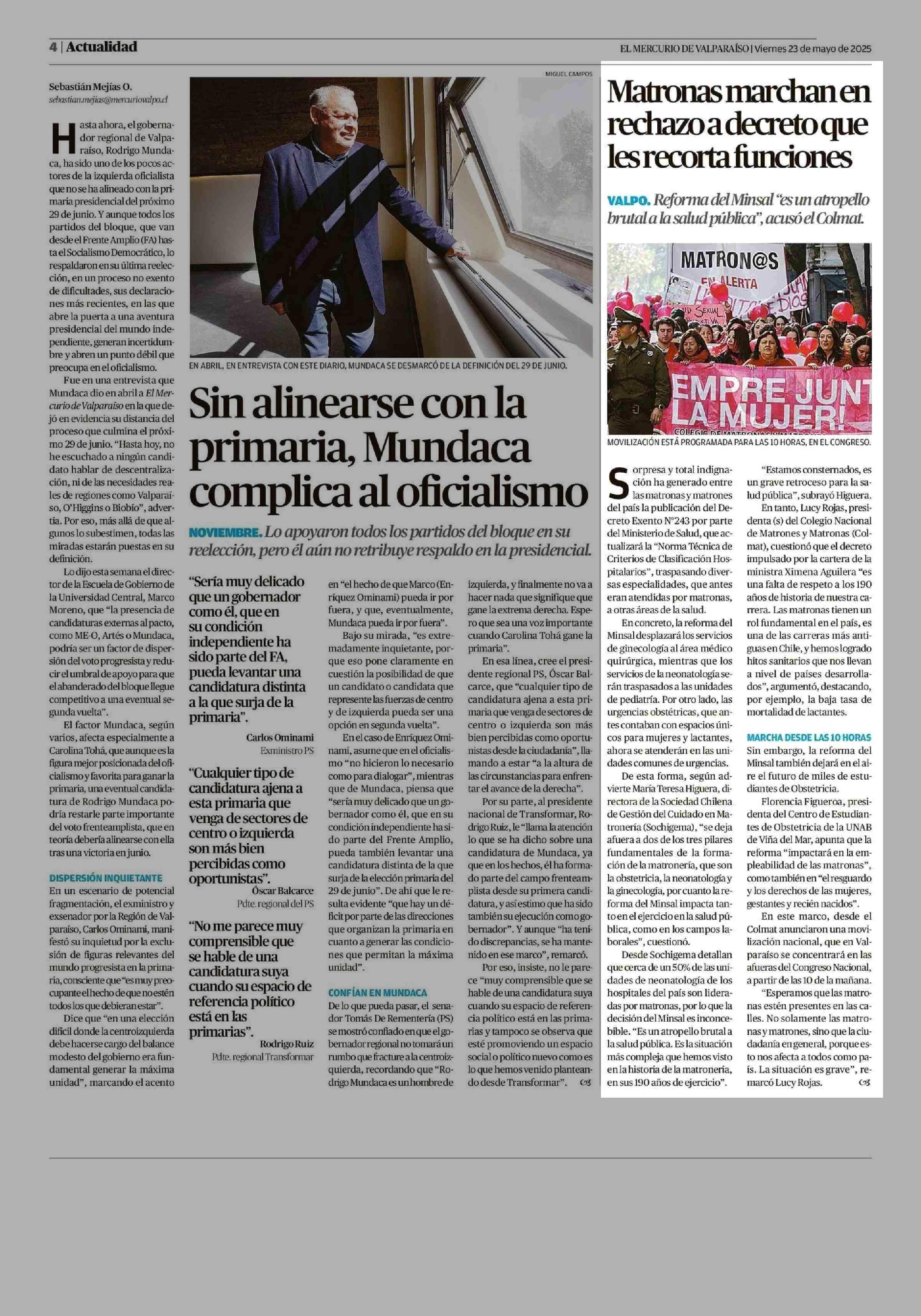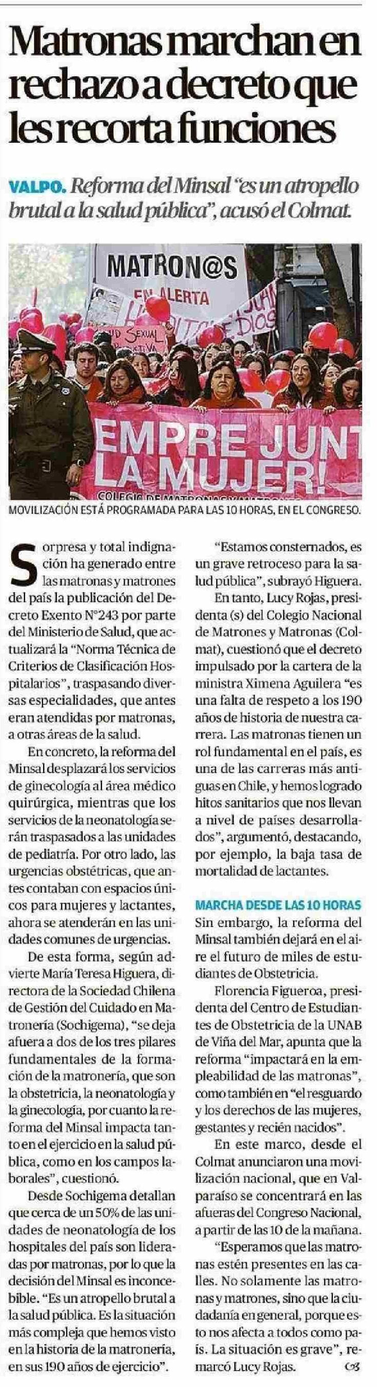 Matronas marchan en rechazo a decreto que les recorta funciones 23-05-2025 El Mercurio de Valparaíso |
