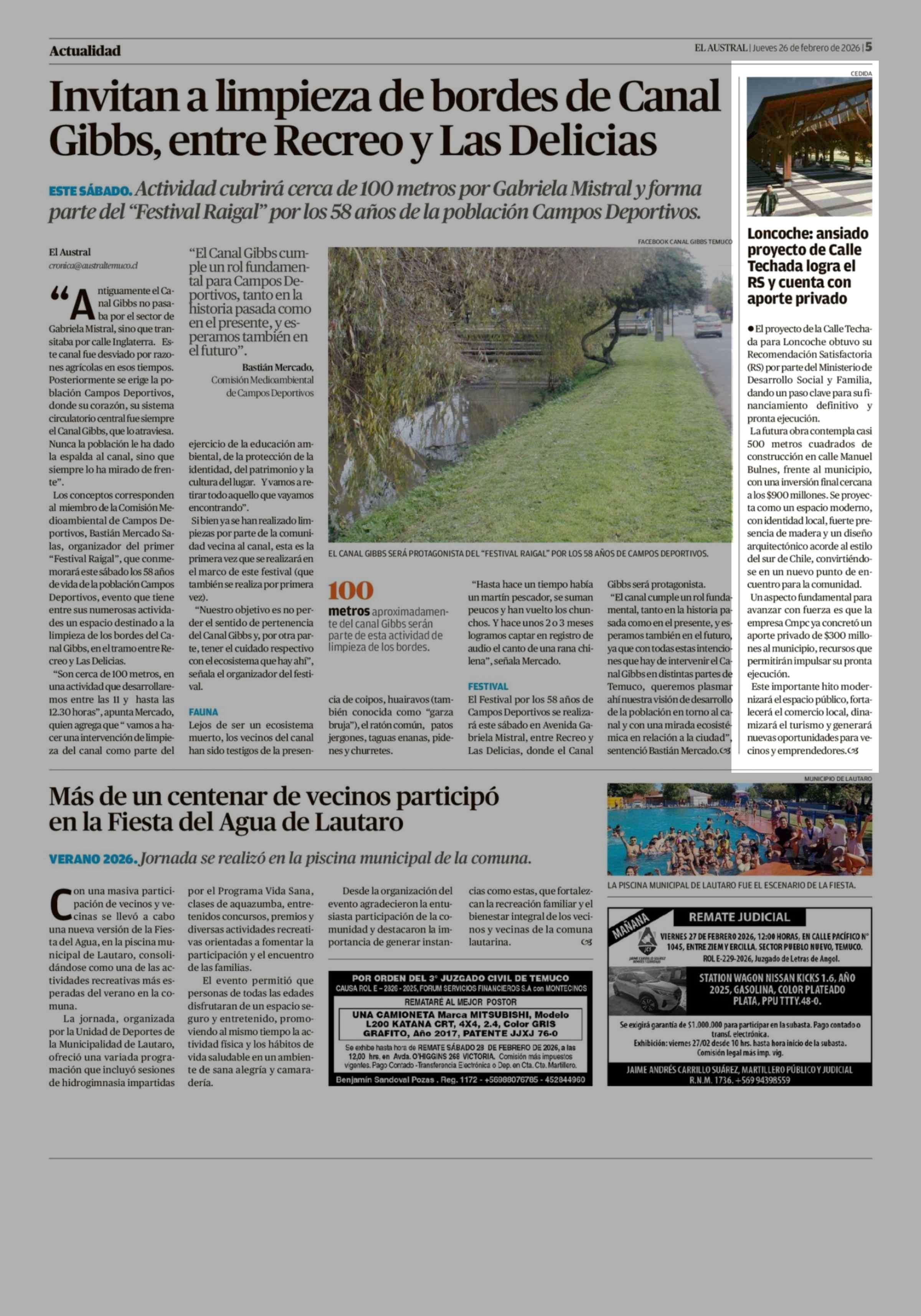 Fecha: 26-02-2026 Sector: Noticia general Región: Región de la Araucanía
