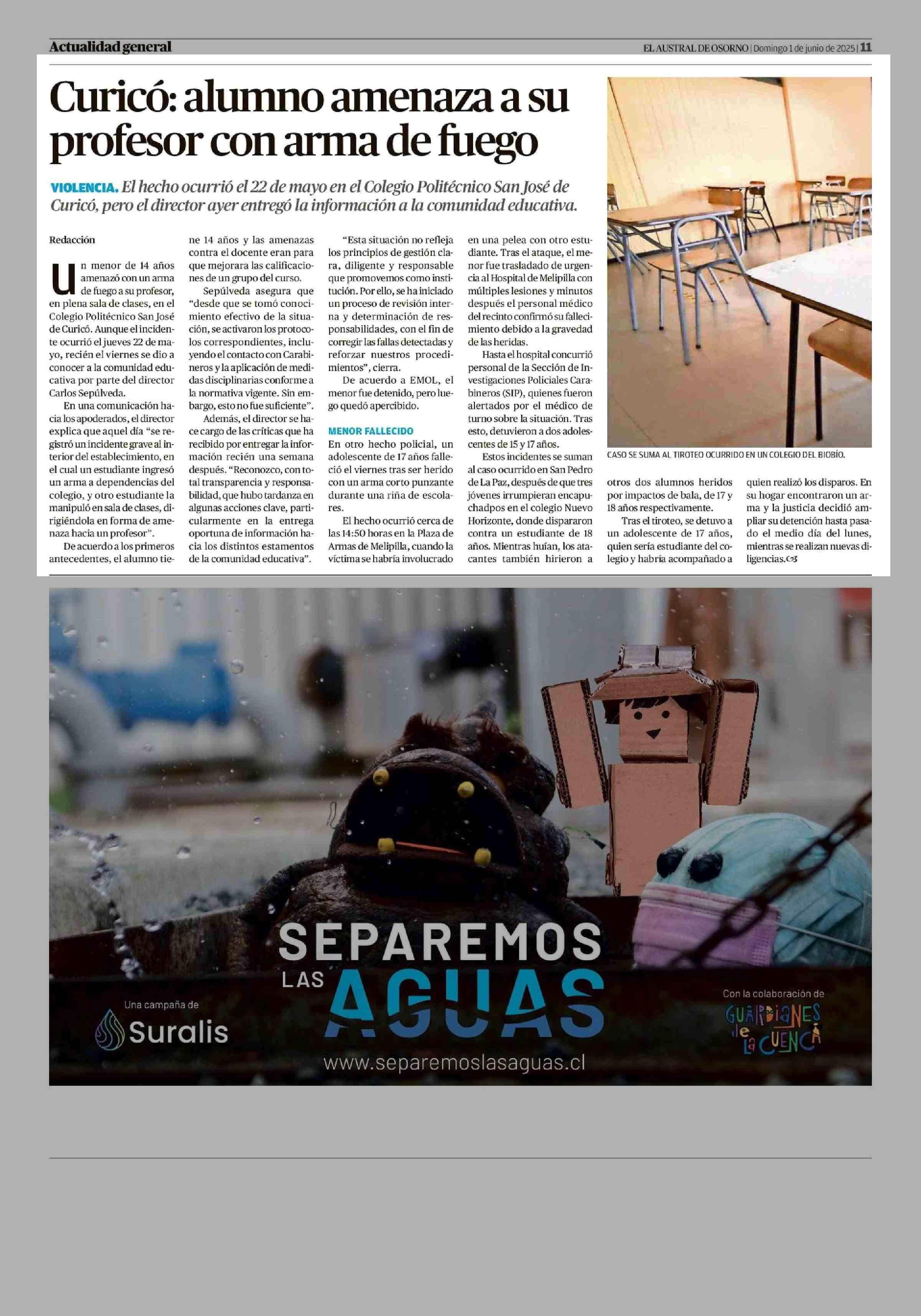 Curicó: alumno amenaza a su | profesor con arma de fuego 01-06-2025 El Austral de Osorno |