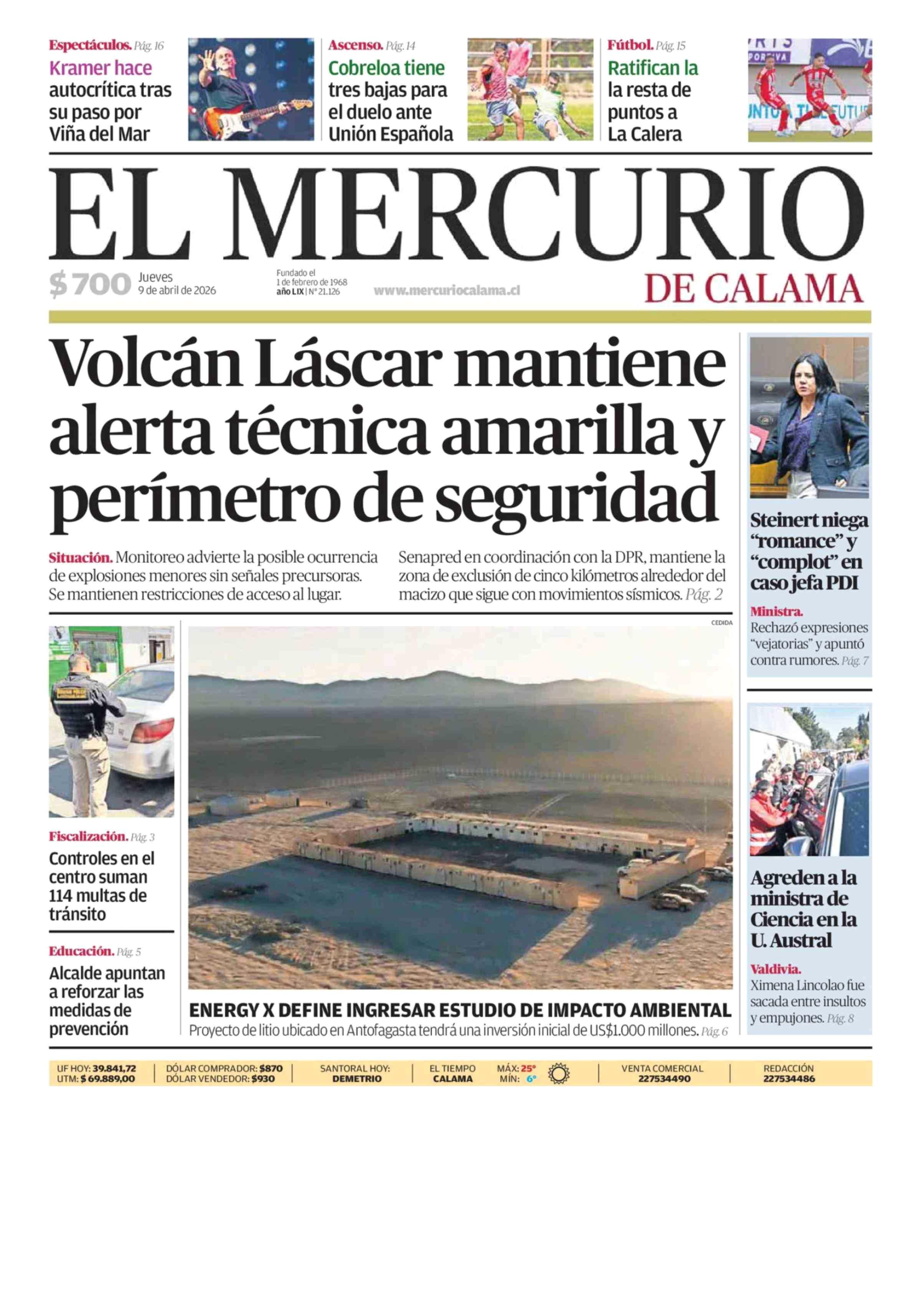 Fecha: 09-04-2026 Sector: Portada Región: Región de Antofagasta