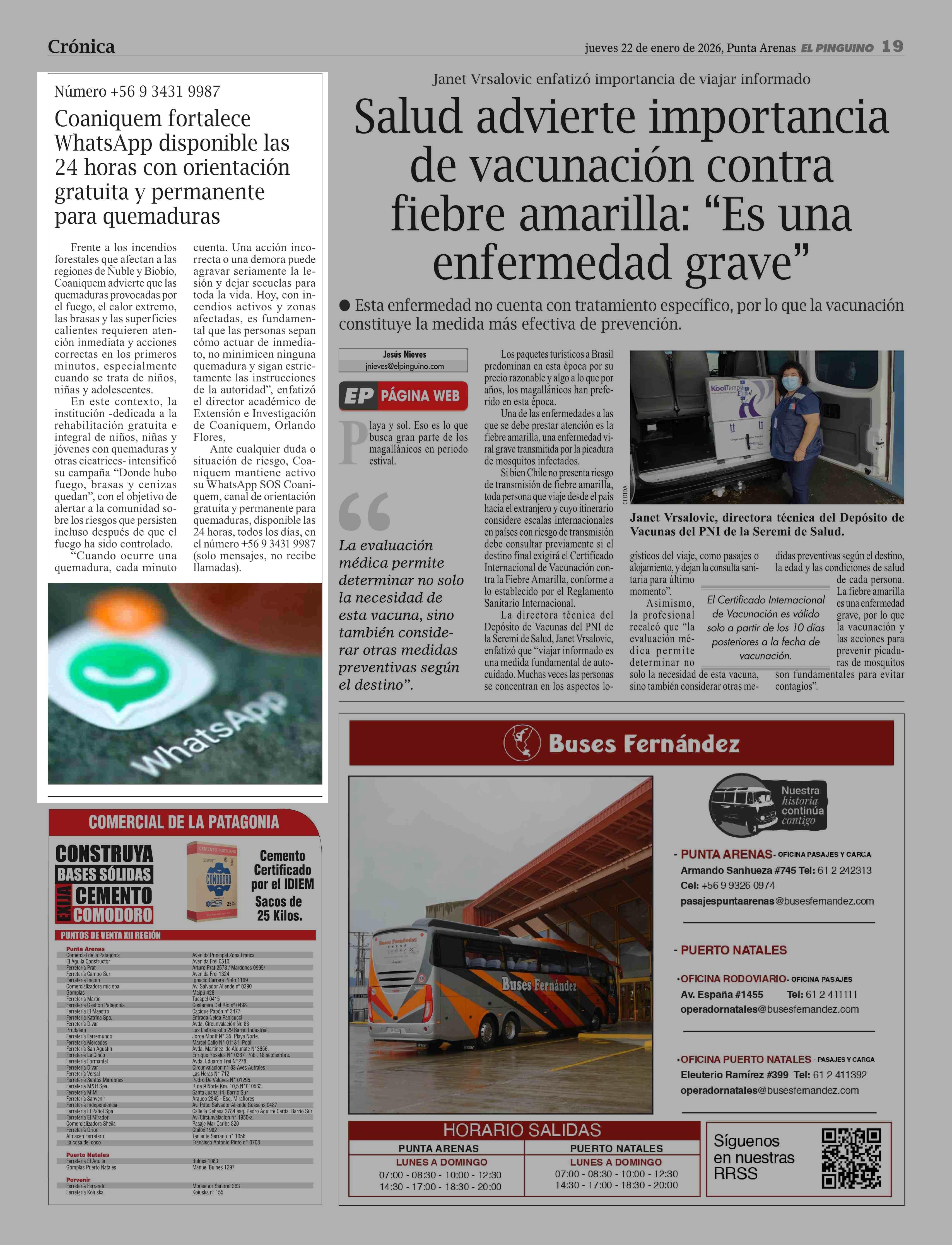 Coaniquem fortalece WhatsApp disponible las 24 horas con orientación gratuita y permanente para quemaduras 22-01-2026 El Pingüino |
