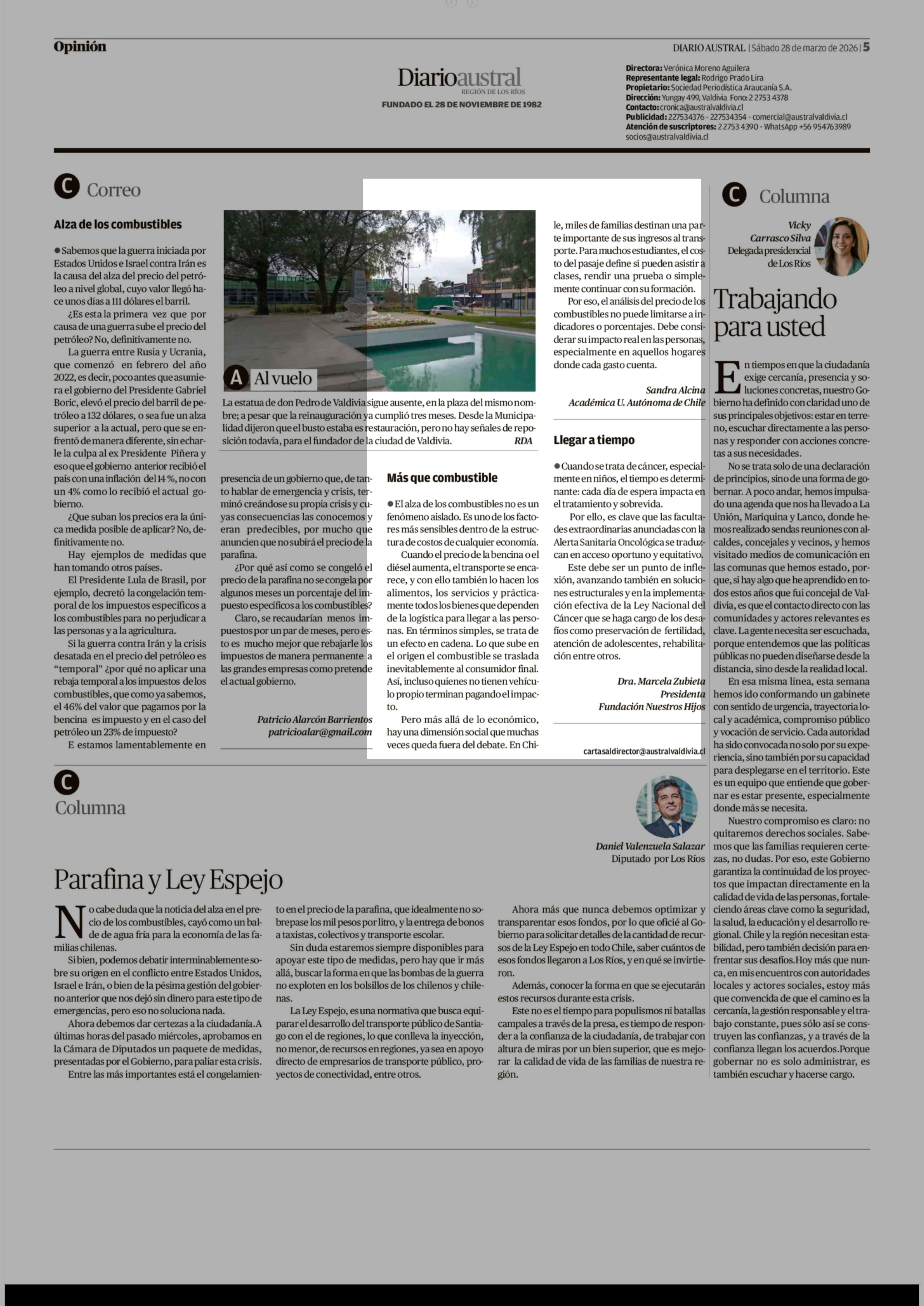 CARTAS: Más que combustible 28-03-2026 Diario Austral Región de Los Ríos |