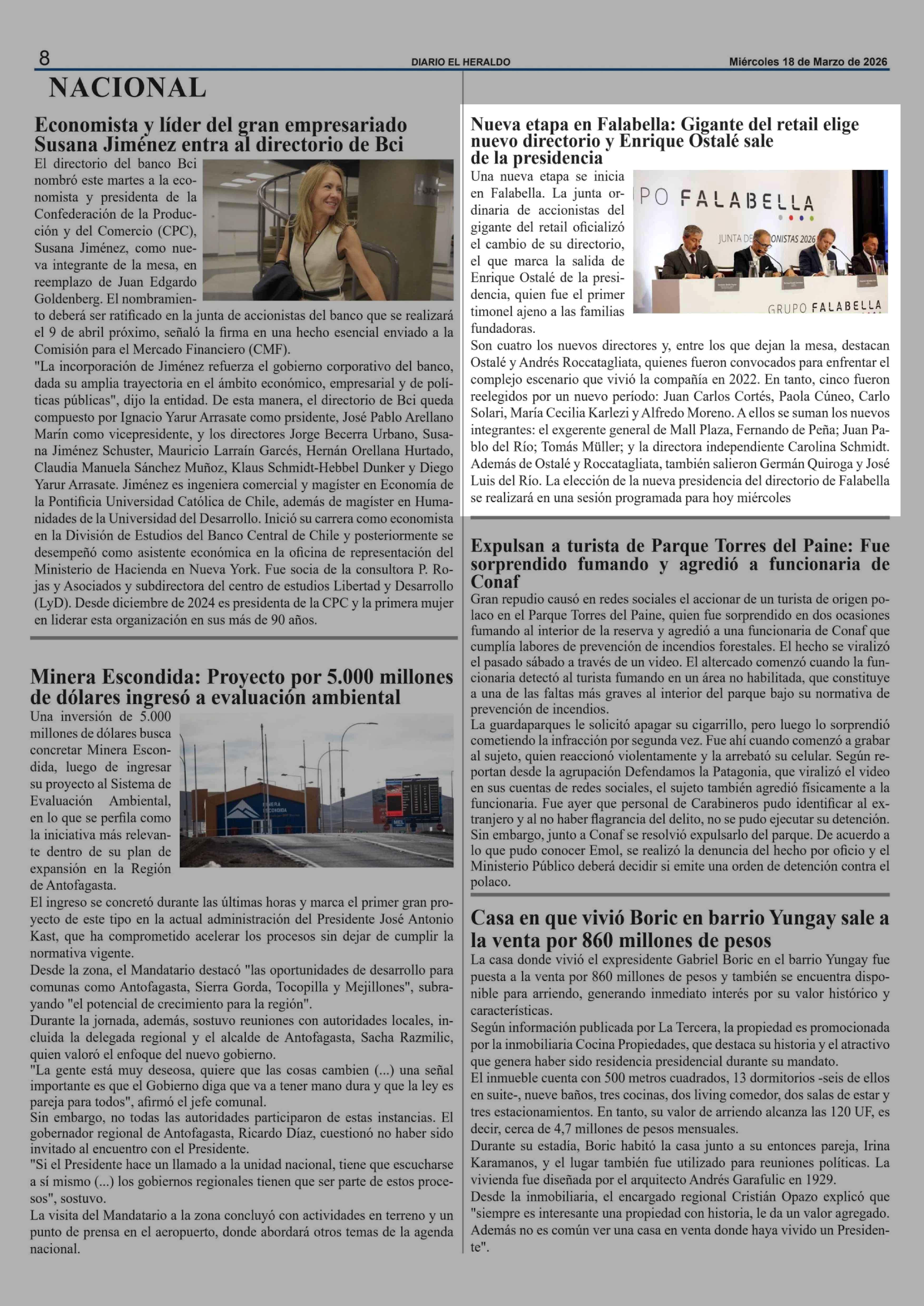 Nueva etapa en Falabella: Gigante del retail elige nuevo directorio y Enrique Ostalé sale de la presidencia 18-03-2026 El Heraldo |