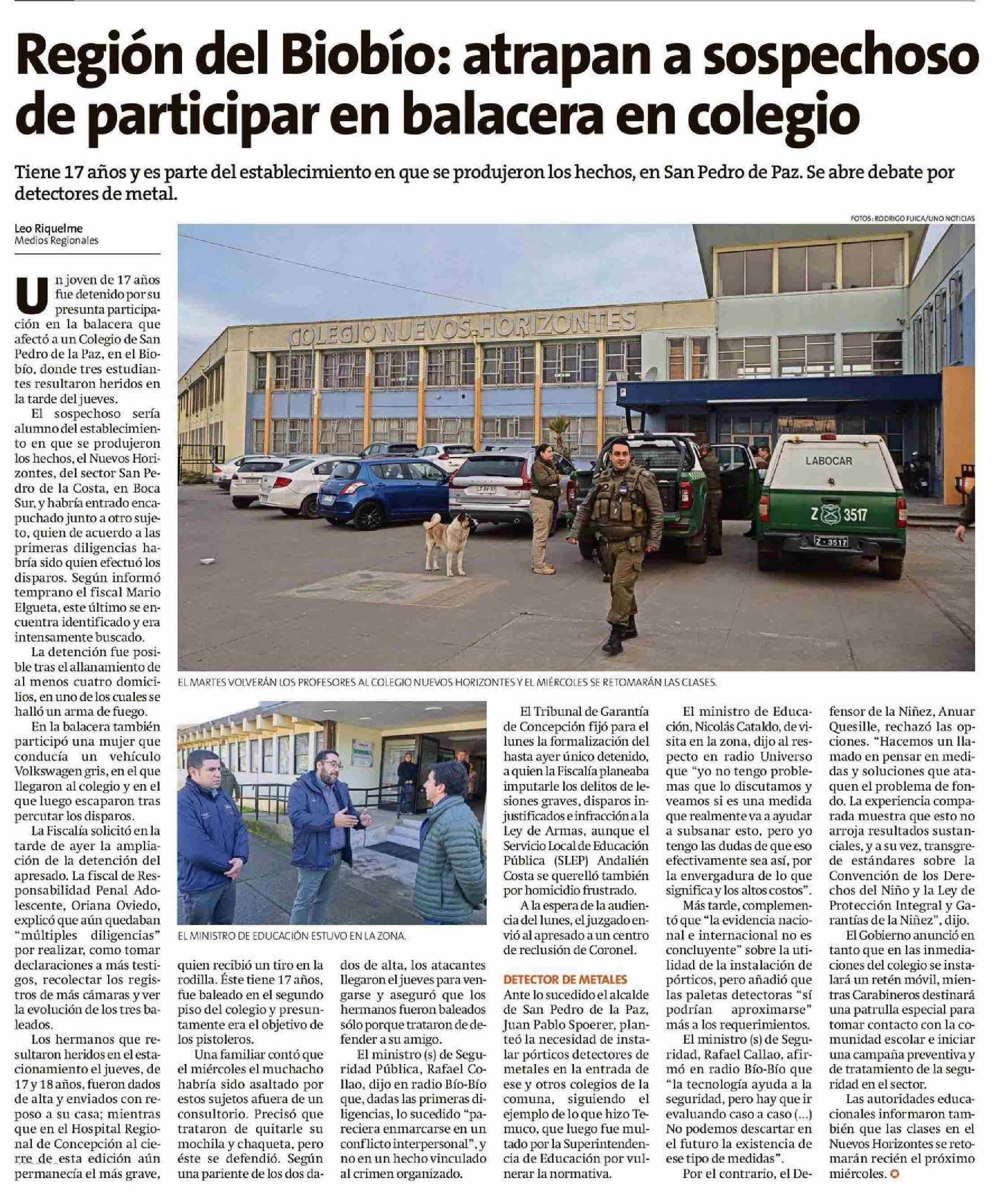 | Título: | Región del Biobío: atrapan a sospechoso de participar en balacera en colegio |