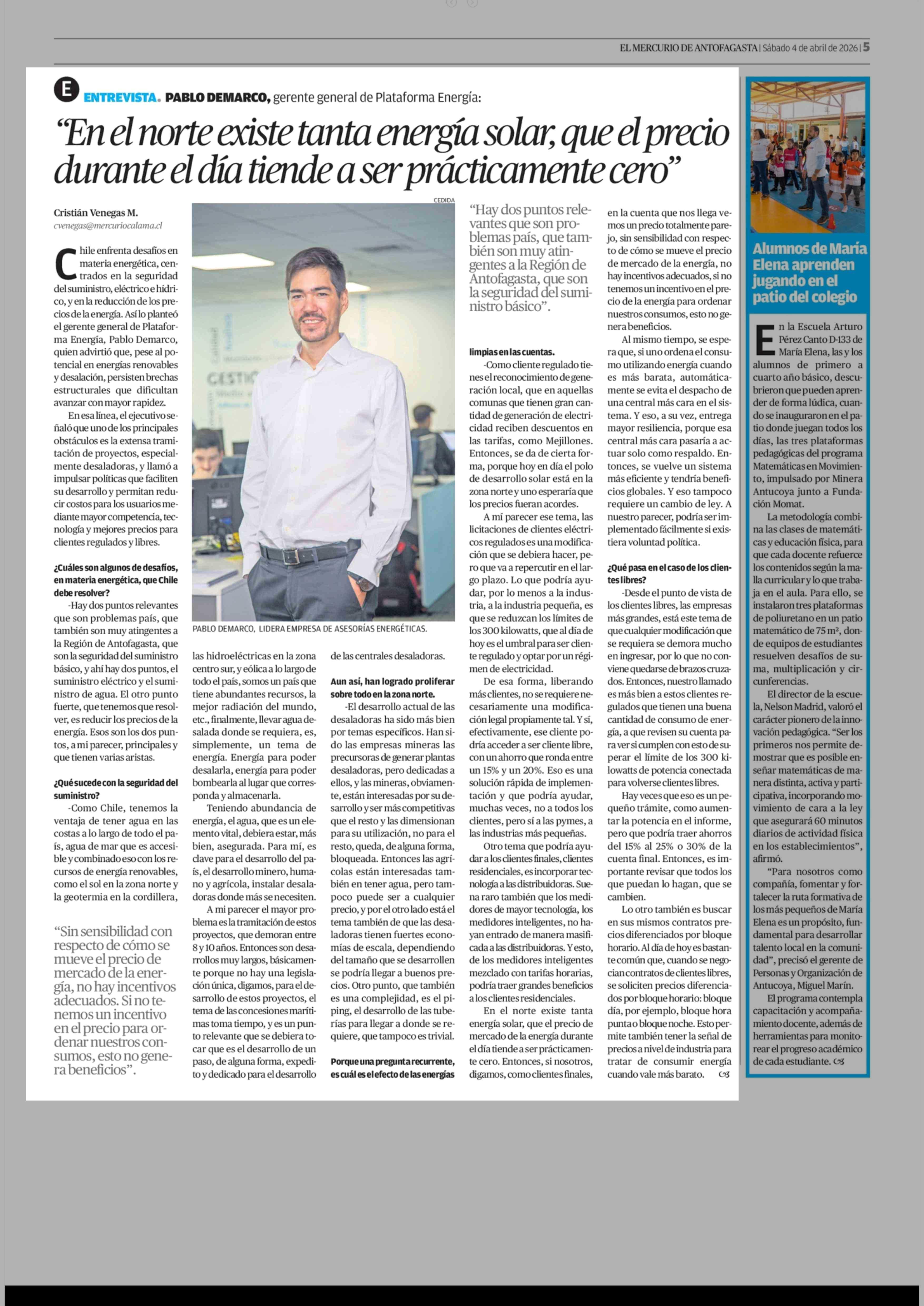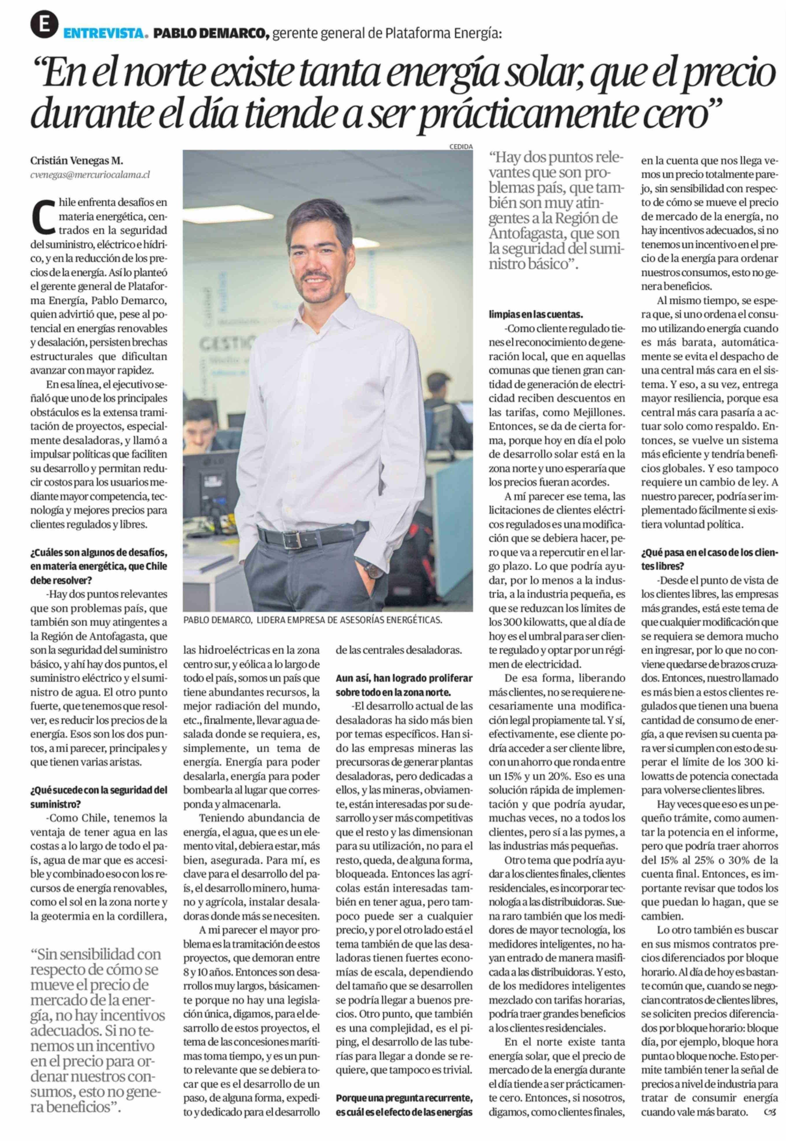 Título: “En el norte existe tanta energía solar, que el precio durante el día tiende a ser prácticamente cero”