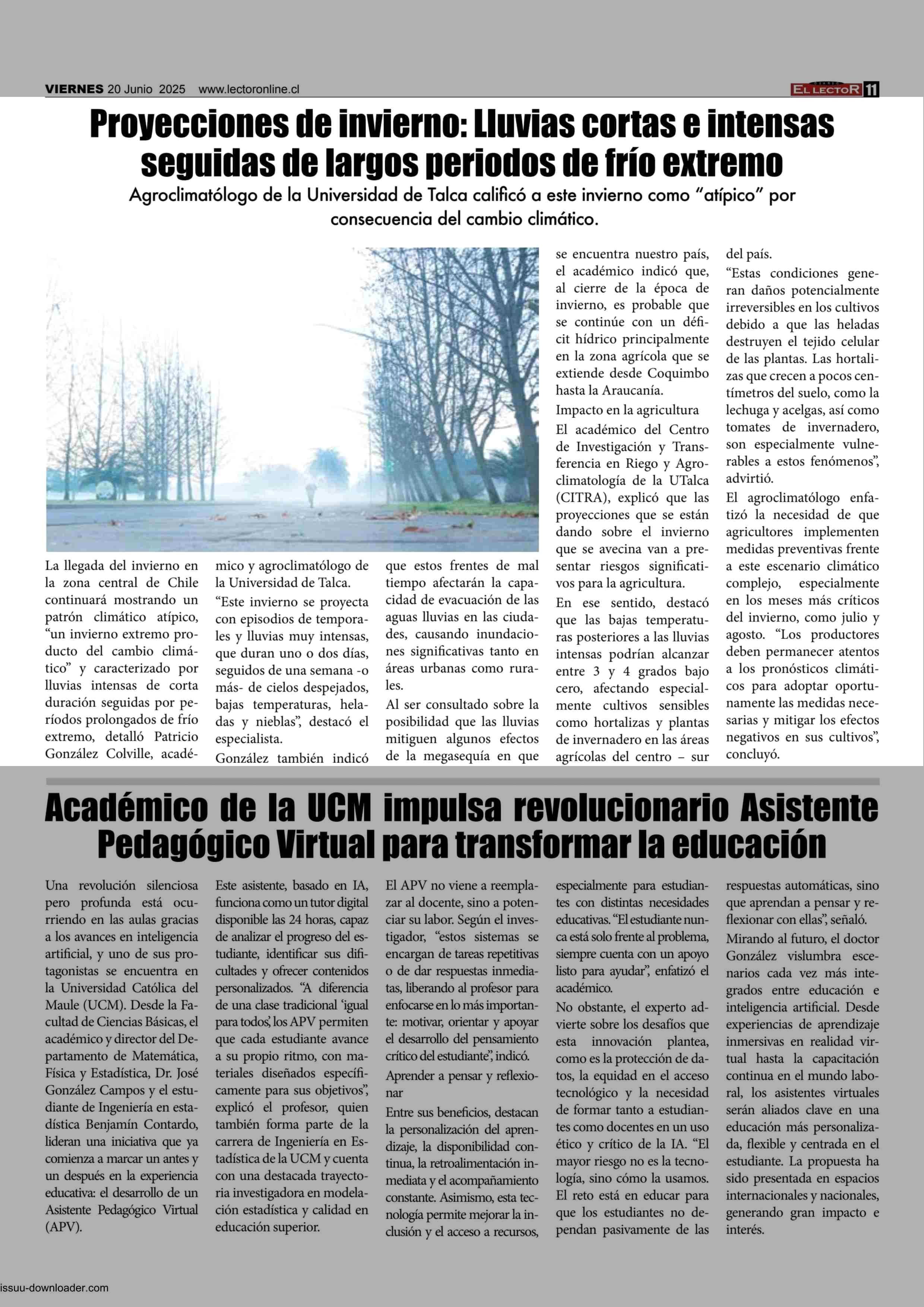 | Fecha: | 20-06-2025 | Sector: | Noticia general | Región: | Región del Maule |