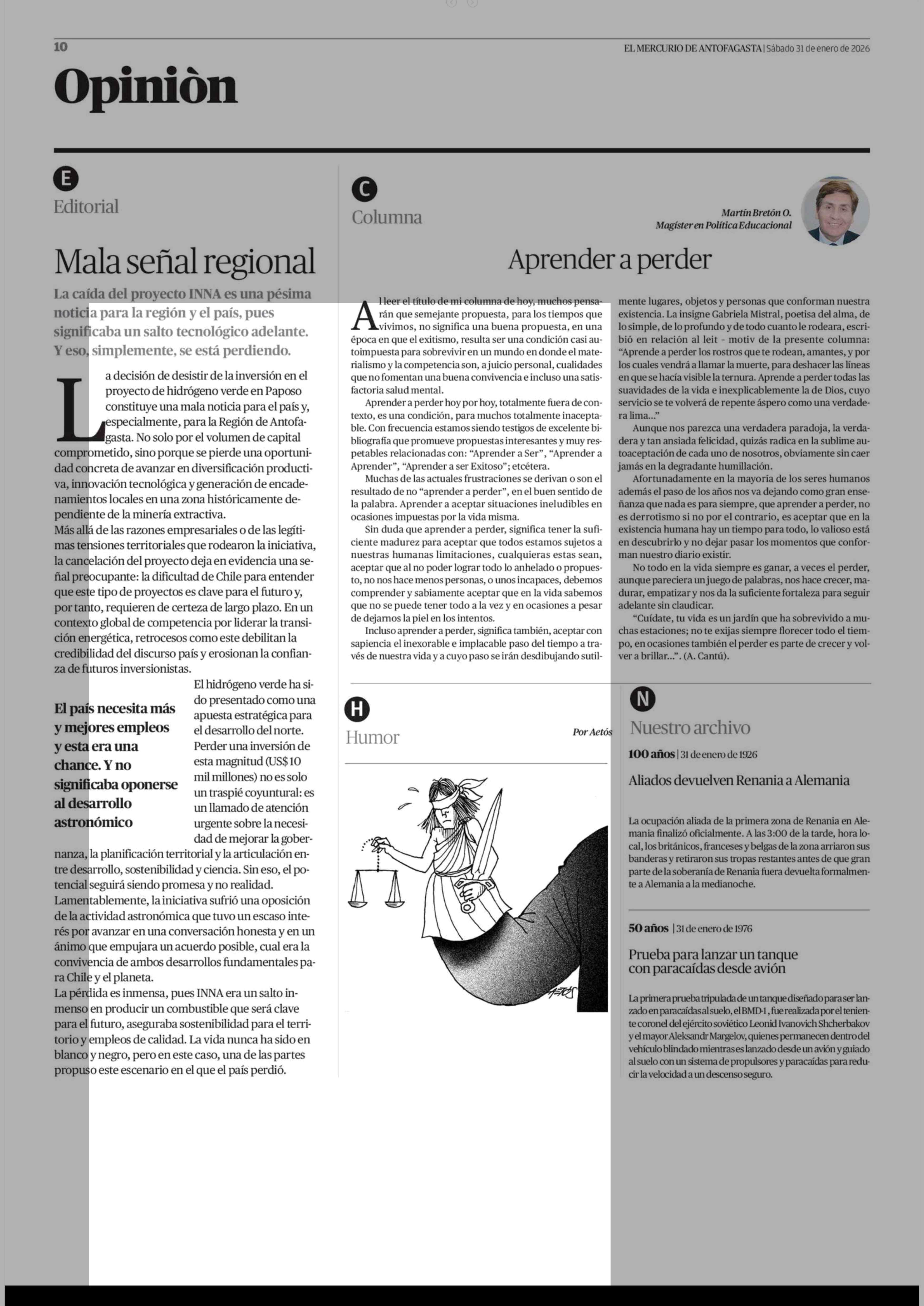 Fecha: 31-01-2026 Sector: Editorial Región: Región de Antofagasta