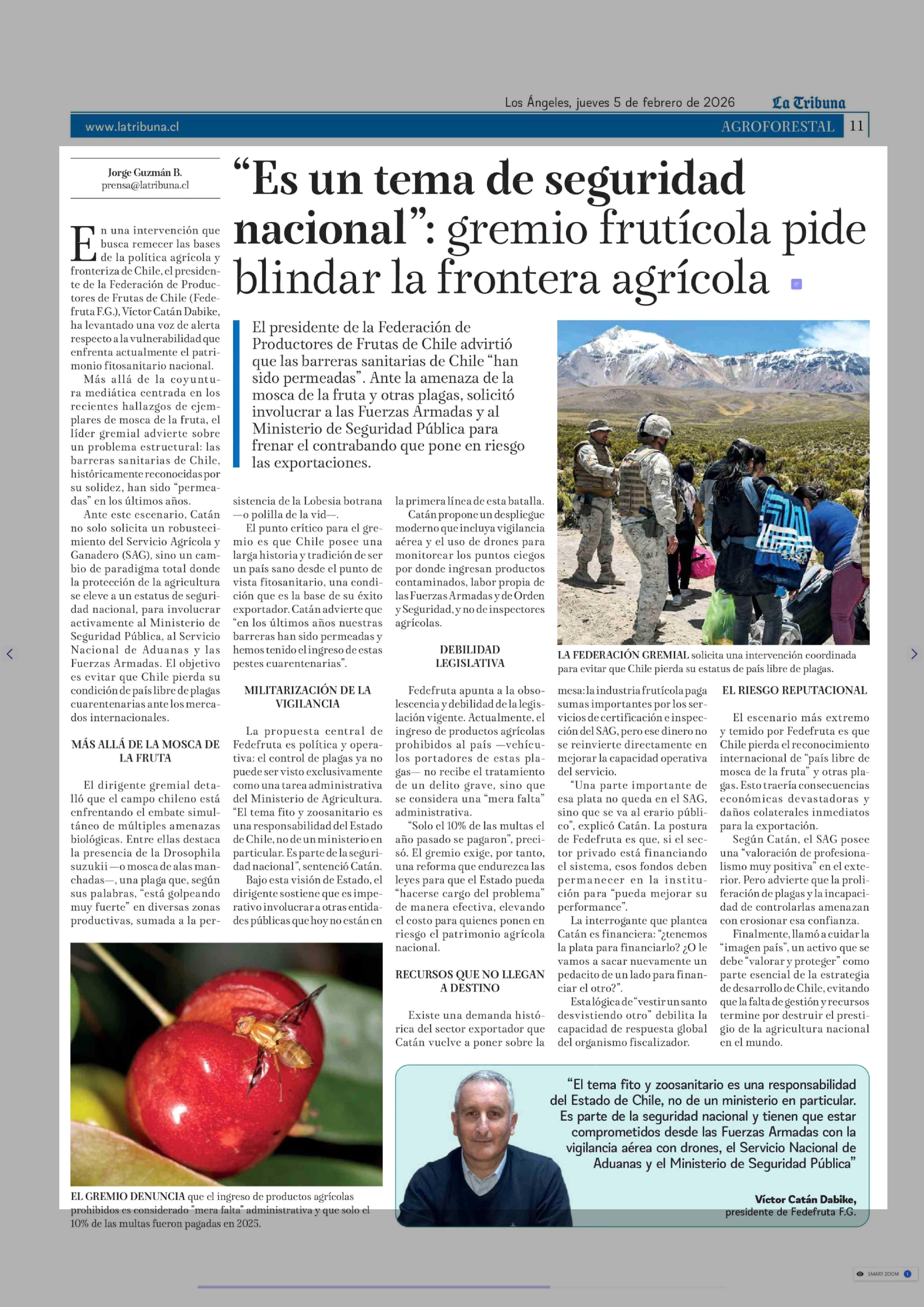 "Es un tema de seguridad nacional": gremio frutícola pide blindar la frontera agrícola 05-02-2026 La Tribuna |