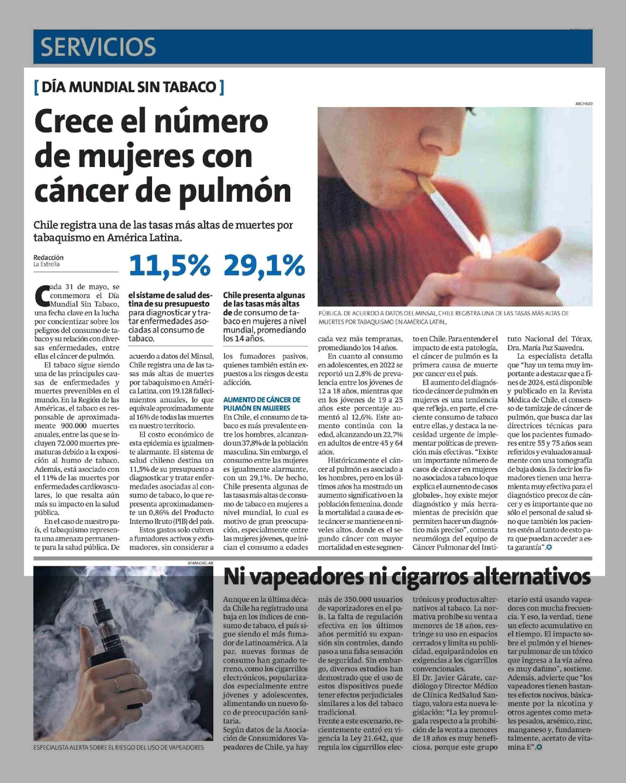 Crece el número de mujeres con cáncer de pulmón 31-05-2025 La Estrella de Antofagasta |