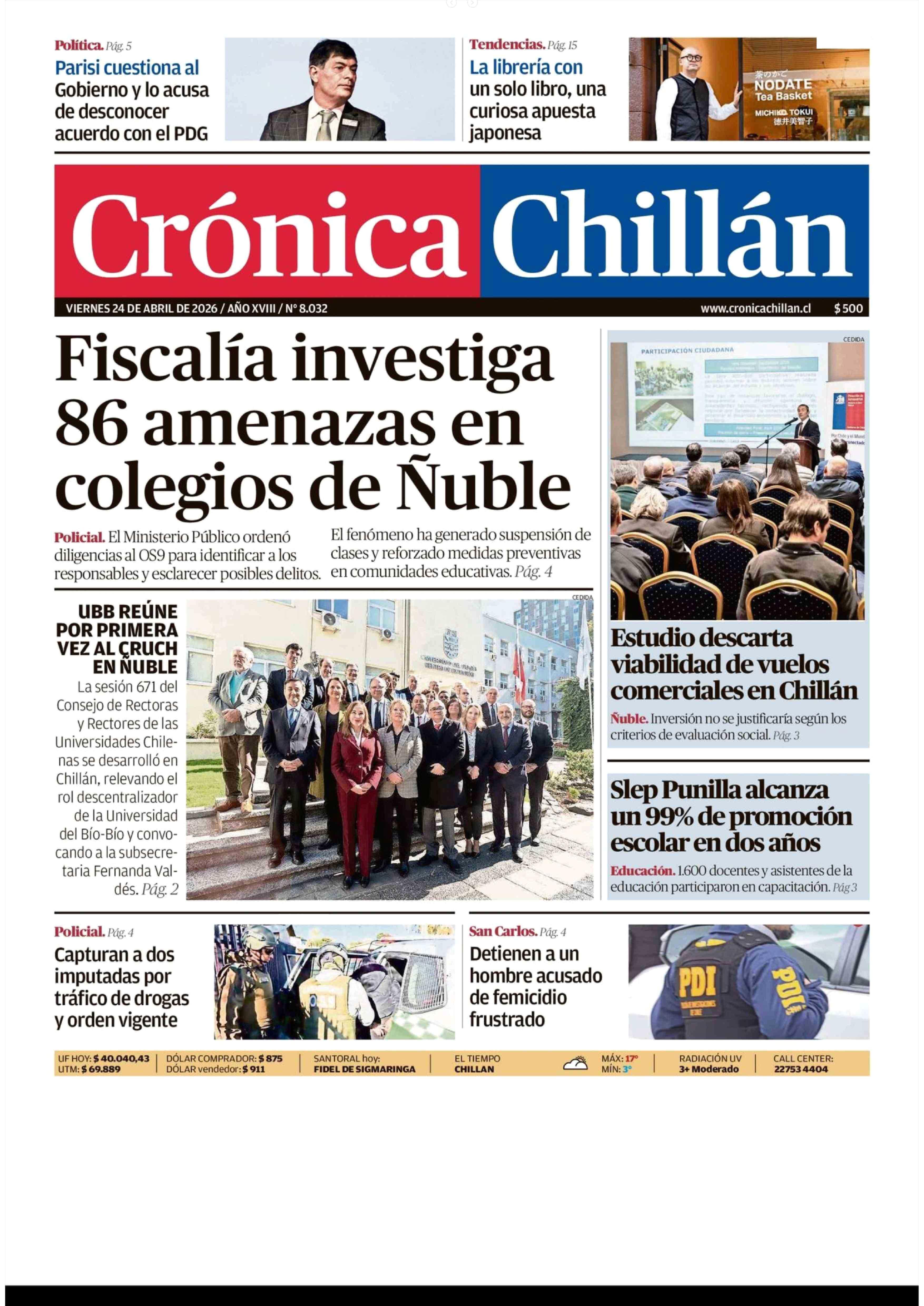 | Fecha: | 24-04-2026 | Sector: | Portada | Región: | Región del Ñuble |