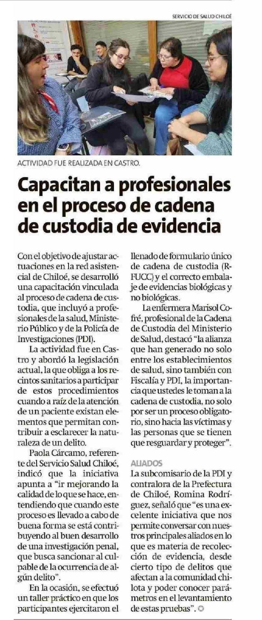 Capacitan a profesionales en el proceso de cadena de custodia de evidencia 24-05-2025 La Estrella de Chiloé |