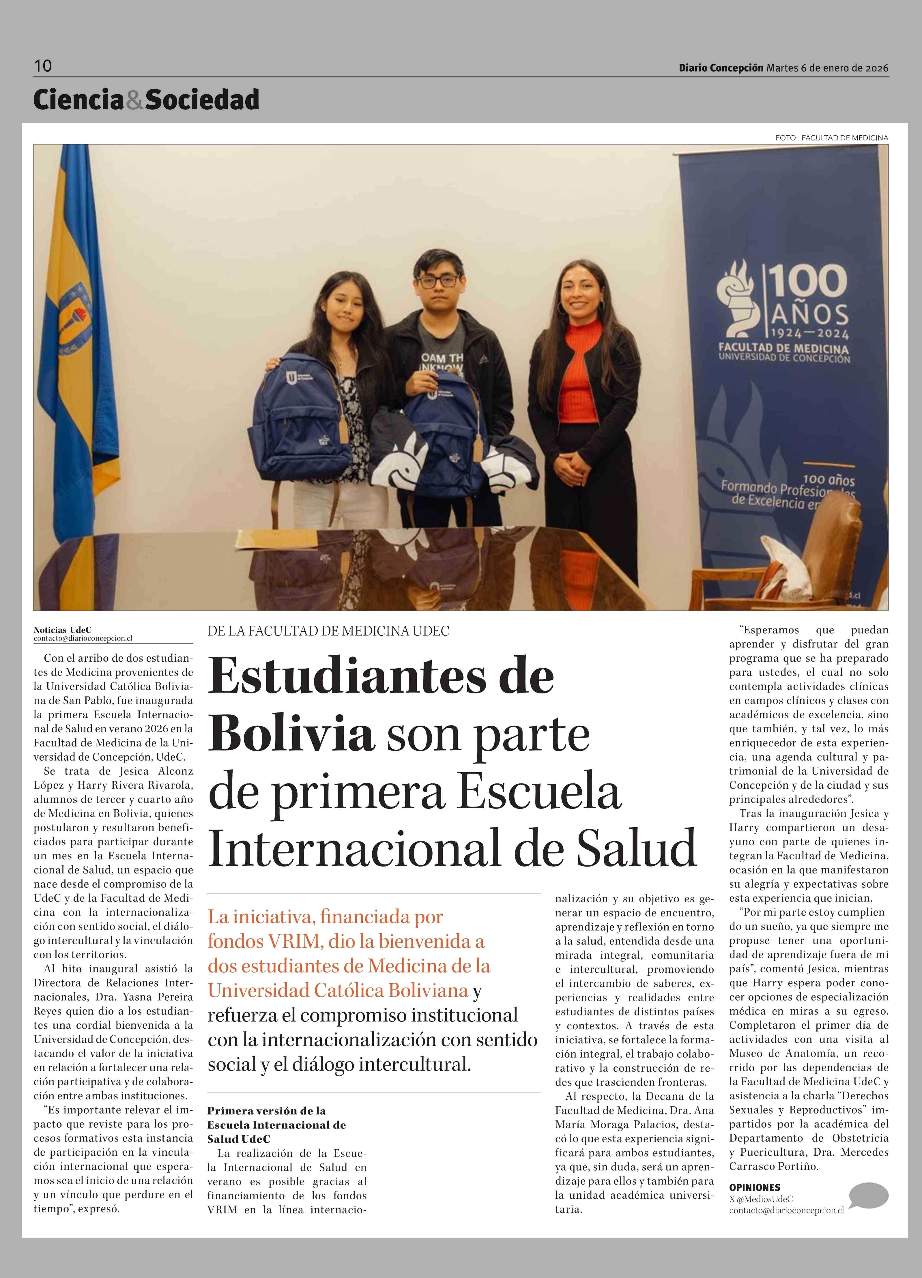 Estudiantes de Bolivia son parte de primera Escuela Internacional de Salud 06-01-2026 Diario Concepción |