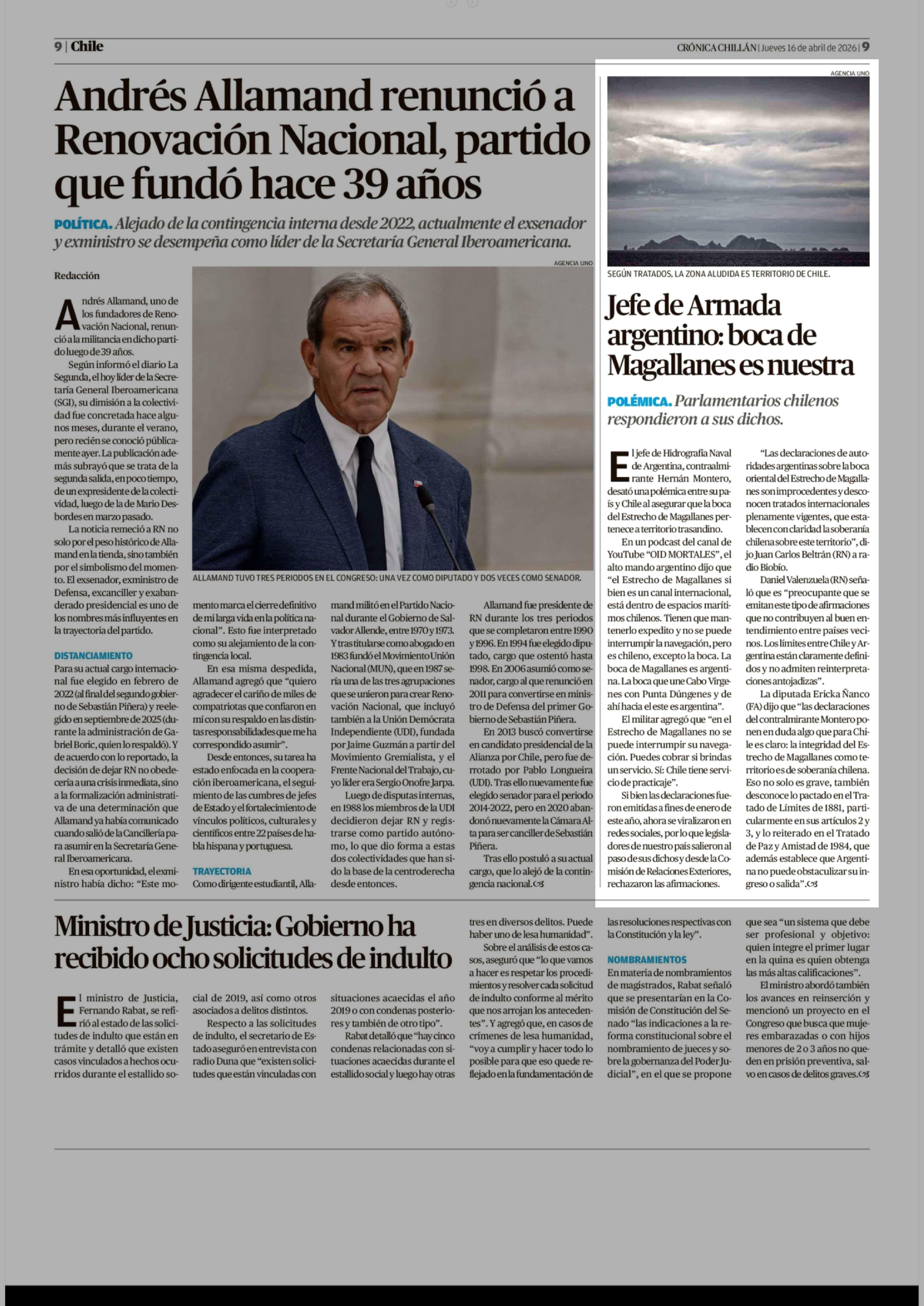 Jefe de Armada argentino: boca de Magallanes es nuestra 16-04-2026 Crónica de Chillán |