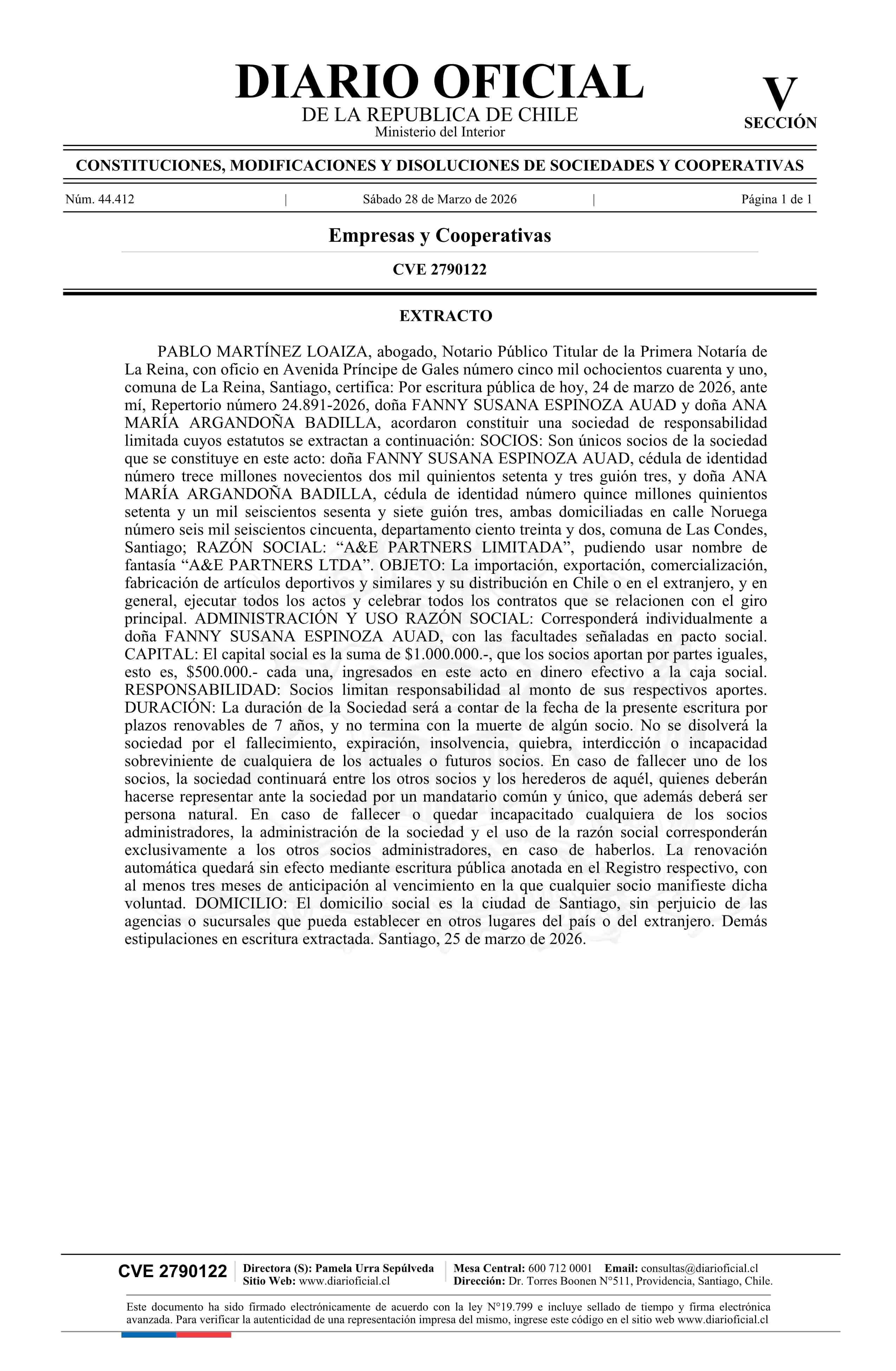Título: A&E PARTNERS LIMITADA