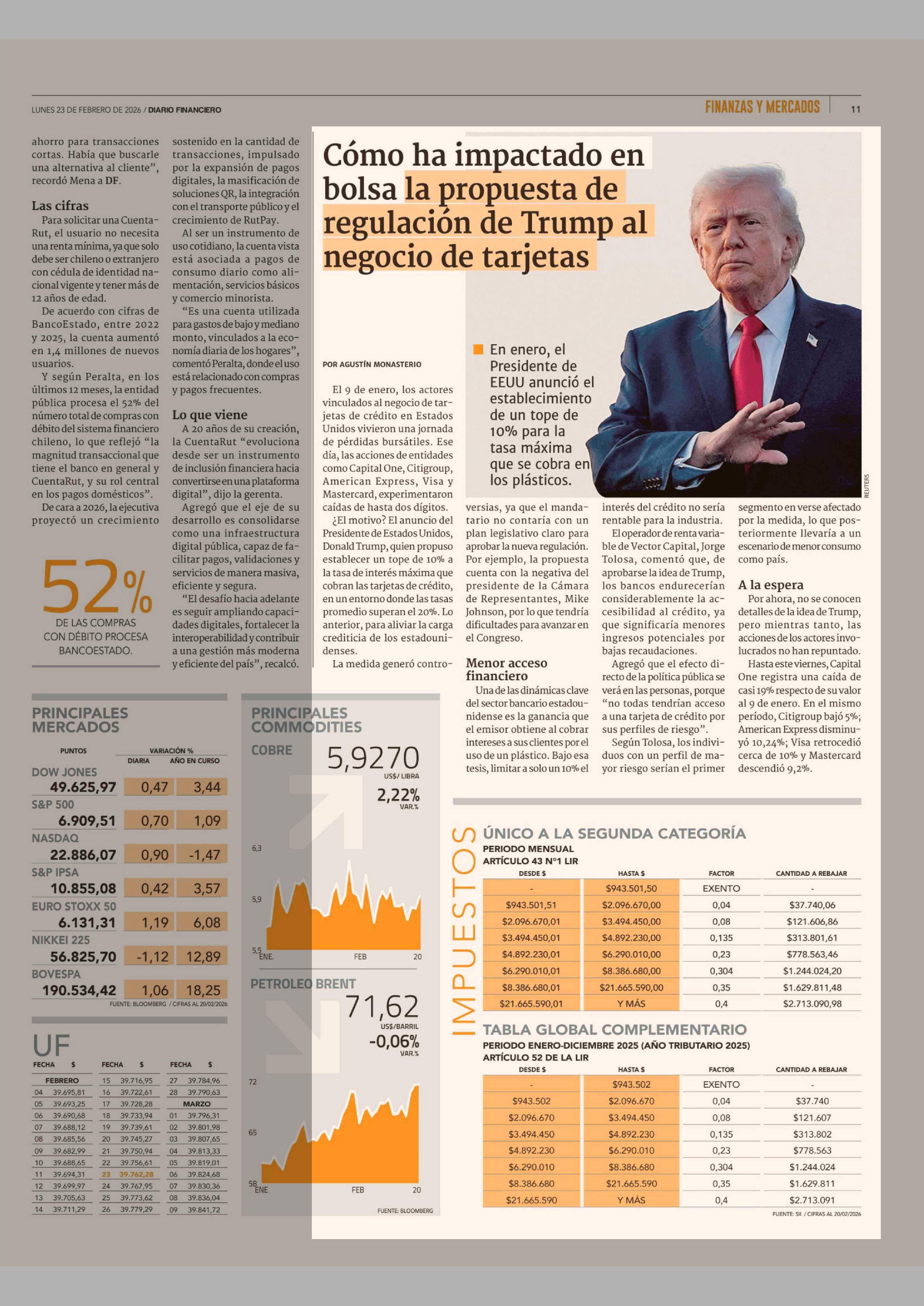 Cómo ha impactado en bolsa la propuesta de regulación de Trump al negocio de tarjetas 23-02-2026 Diario Financiero |