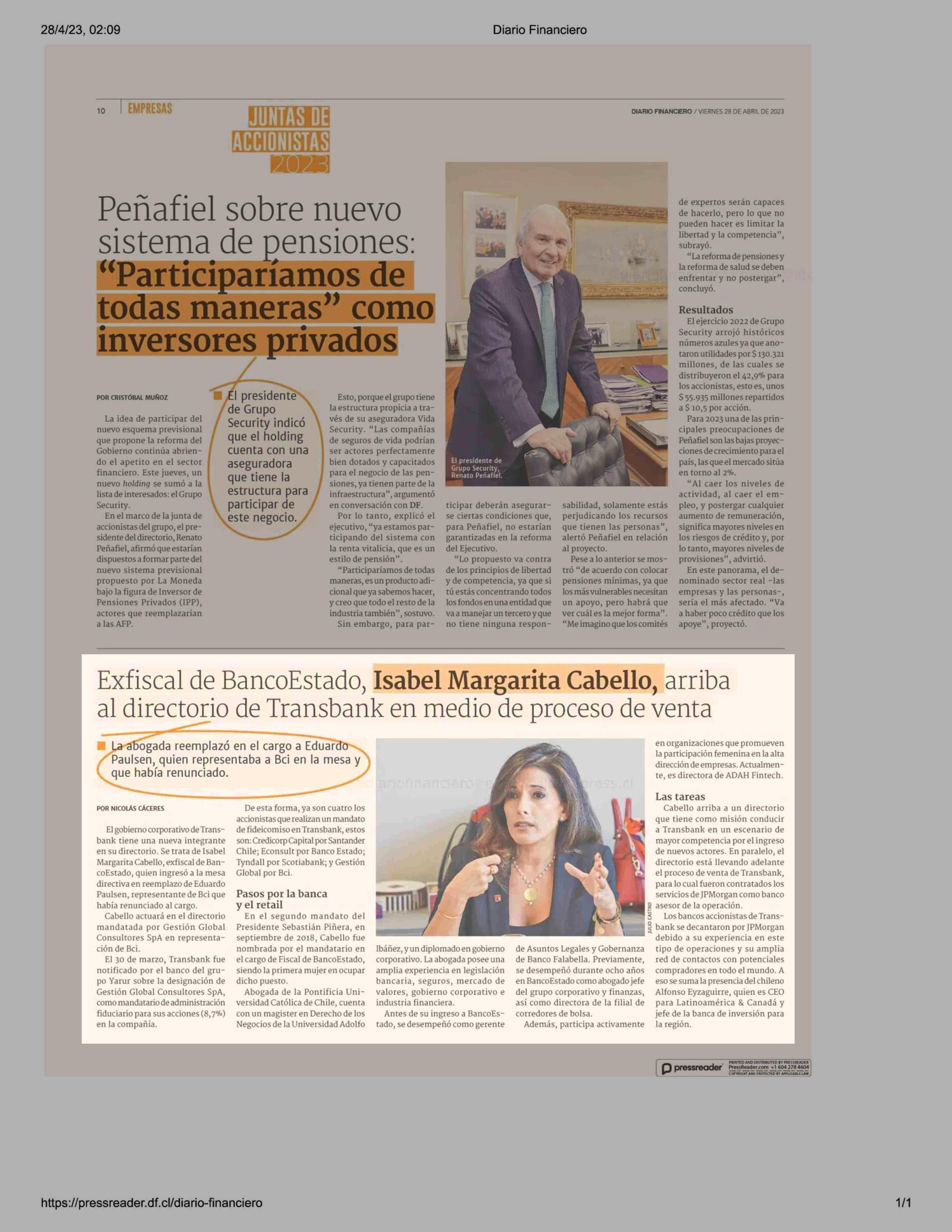 Exfiscal de BancoEstado, Isabel Margarita Cabello, arriba al directorio de Transbank en medio de proceso de venta 28-04-2023 Diario Financiero |