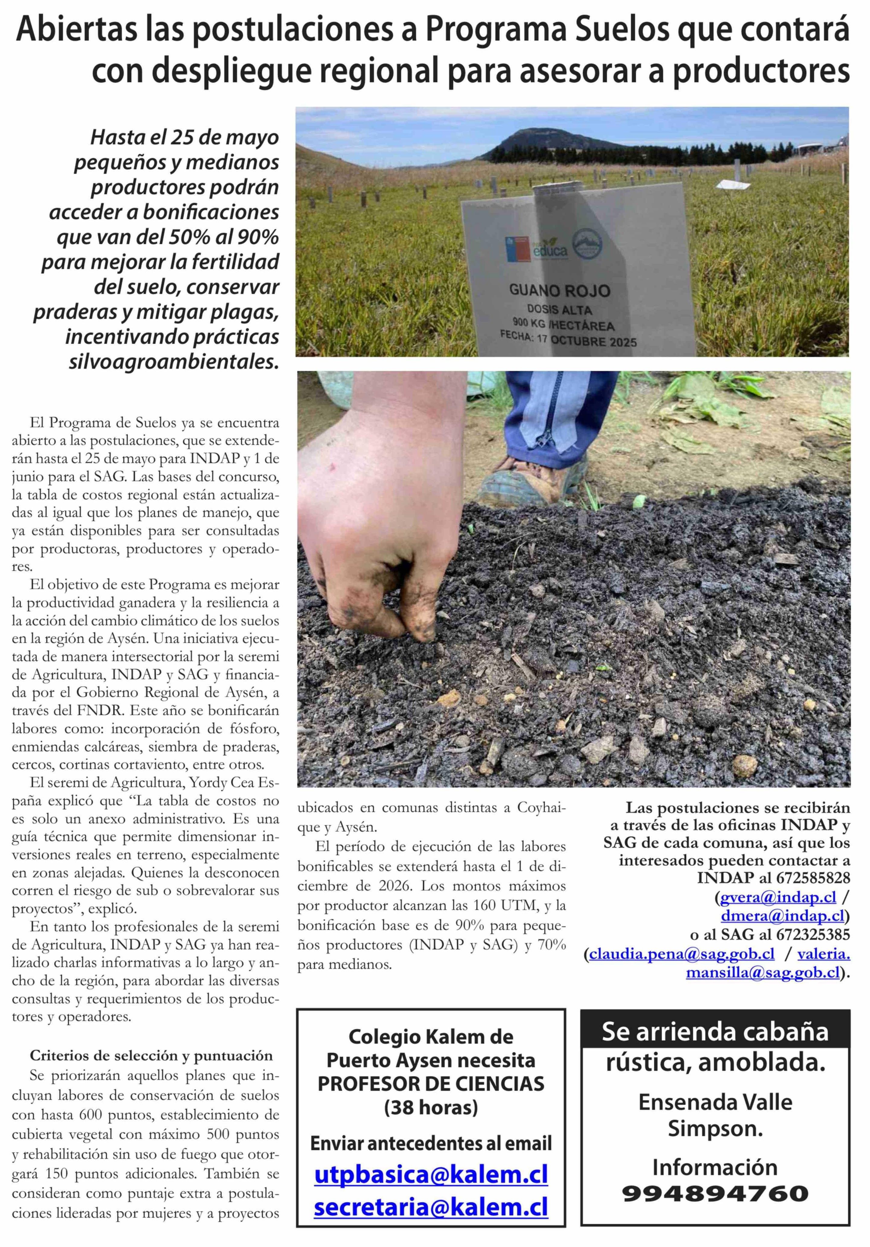 | Fecha: | 10-04-2026 | Sector: | Noticia general | Región: | Región Aysén del General Carlos Ibáñez del Campo |