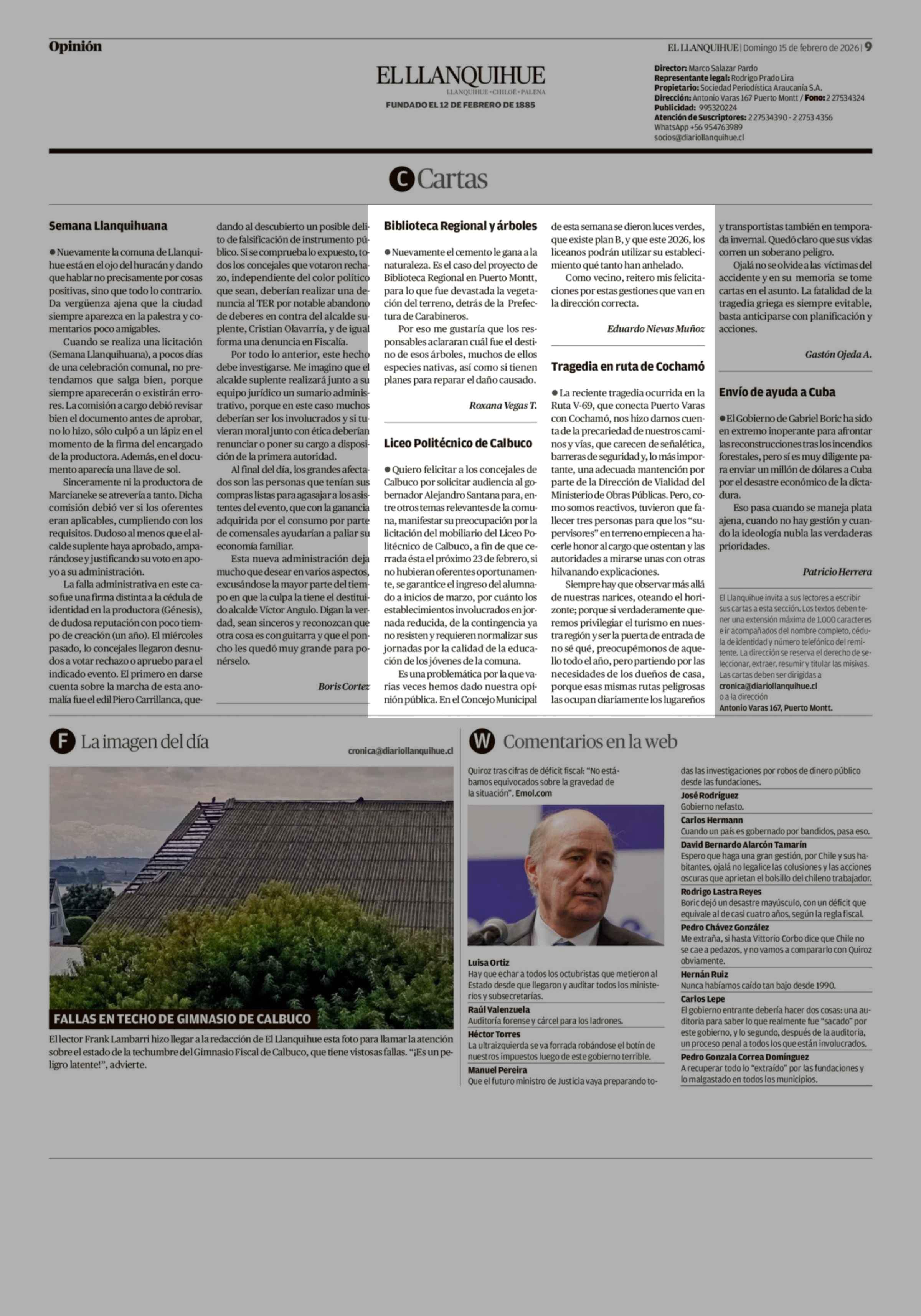 Cartas: Tragedia en ruta de Cochamó 15-02-2026 El Llanquihue |