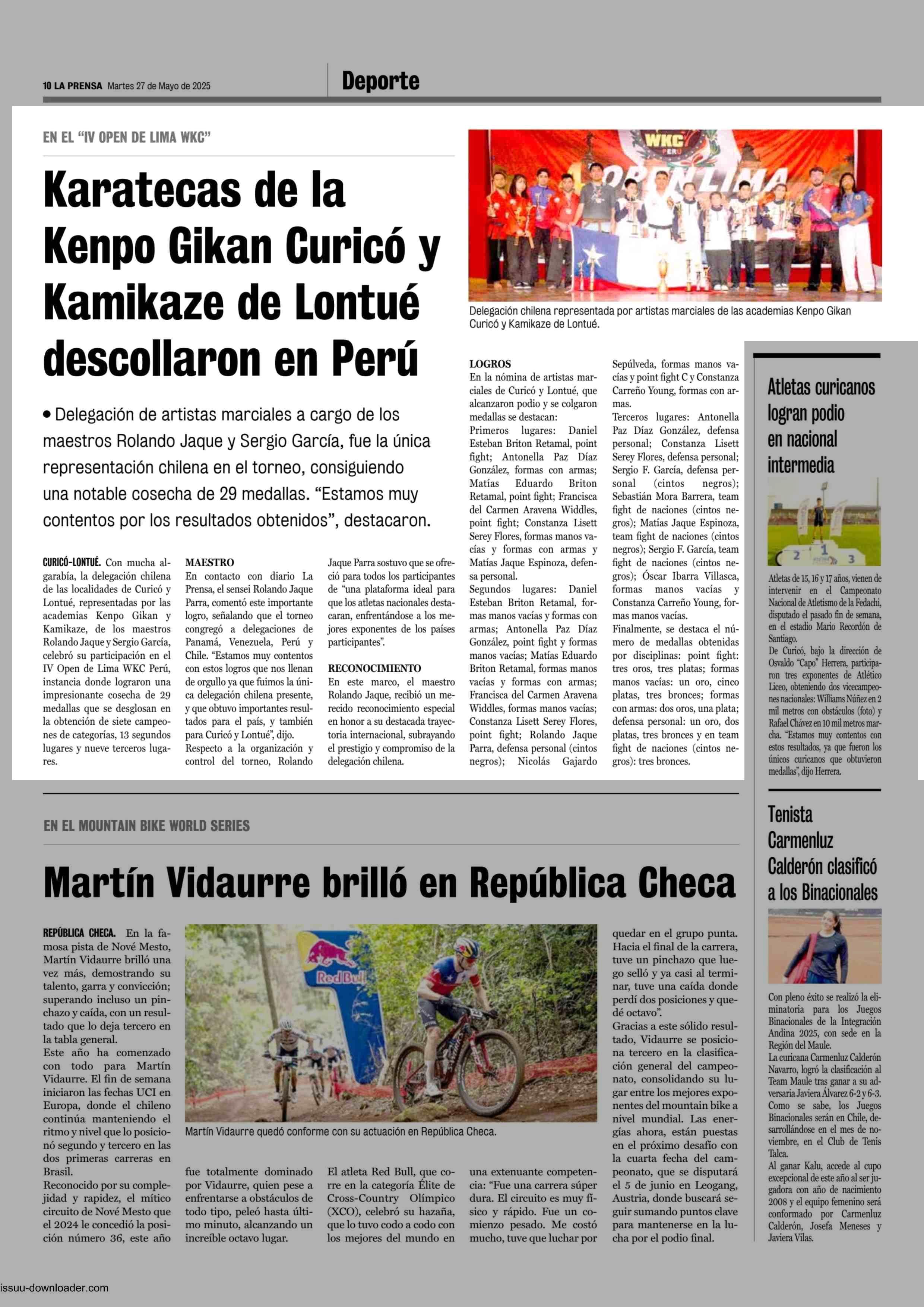 Karatecas de la Kenpo Gikan Curicó y Kamikaze de Lontué descollaron en Perú 27-05-2025 La Prensa de Curicó |