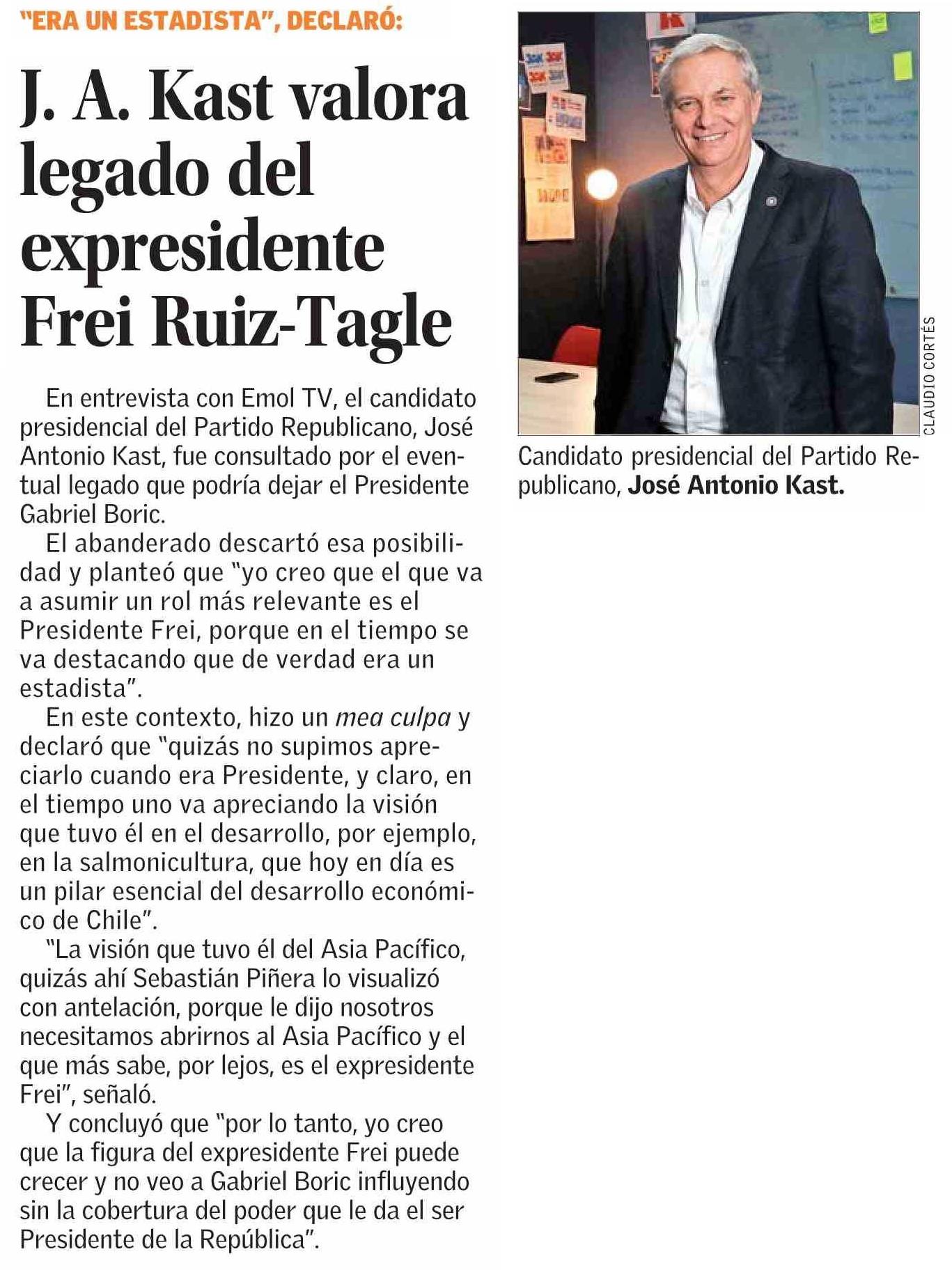 J. A. Kast valora legado del expresidente Frei Ruiz-Tagle 04-06-2025 El Mercurio |