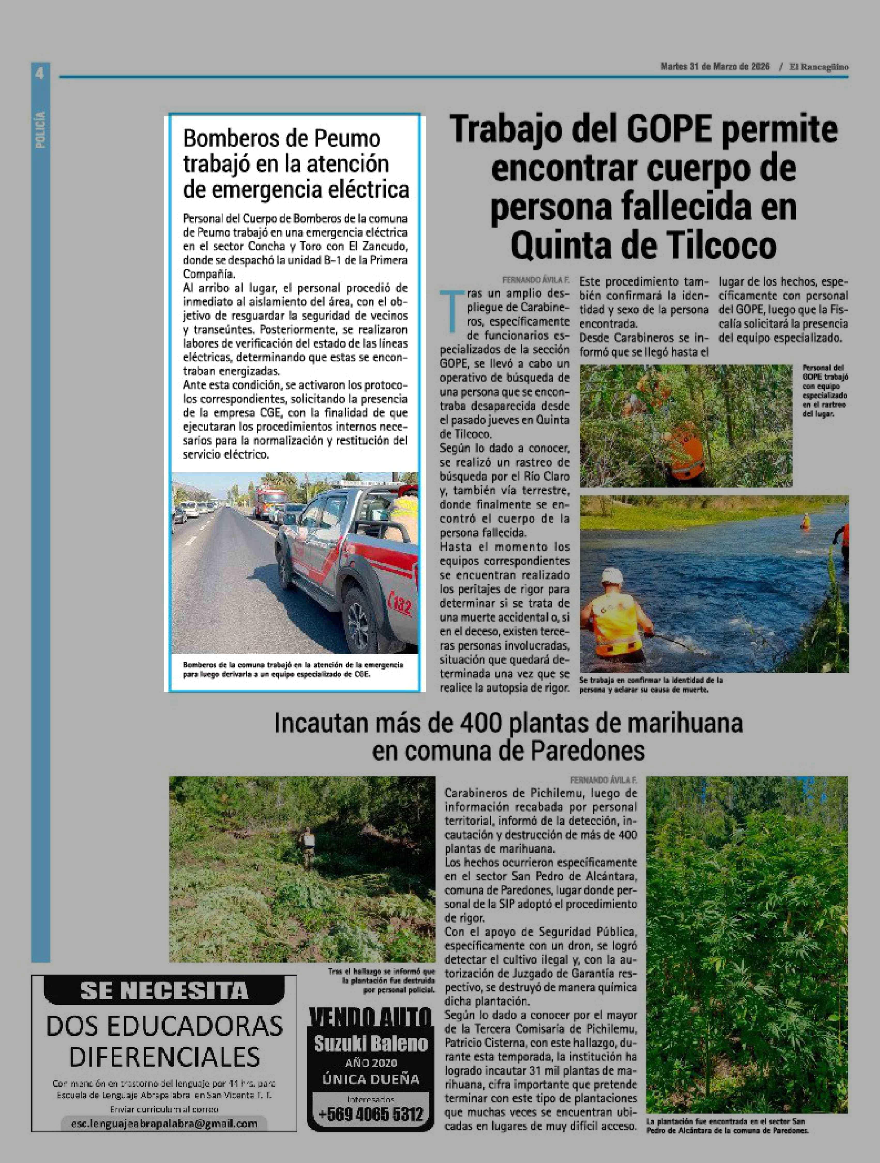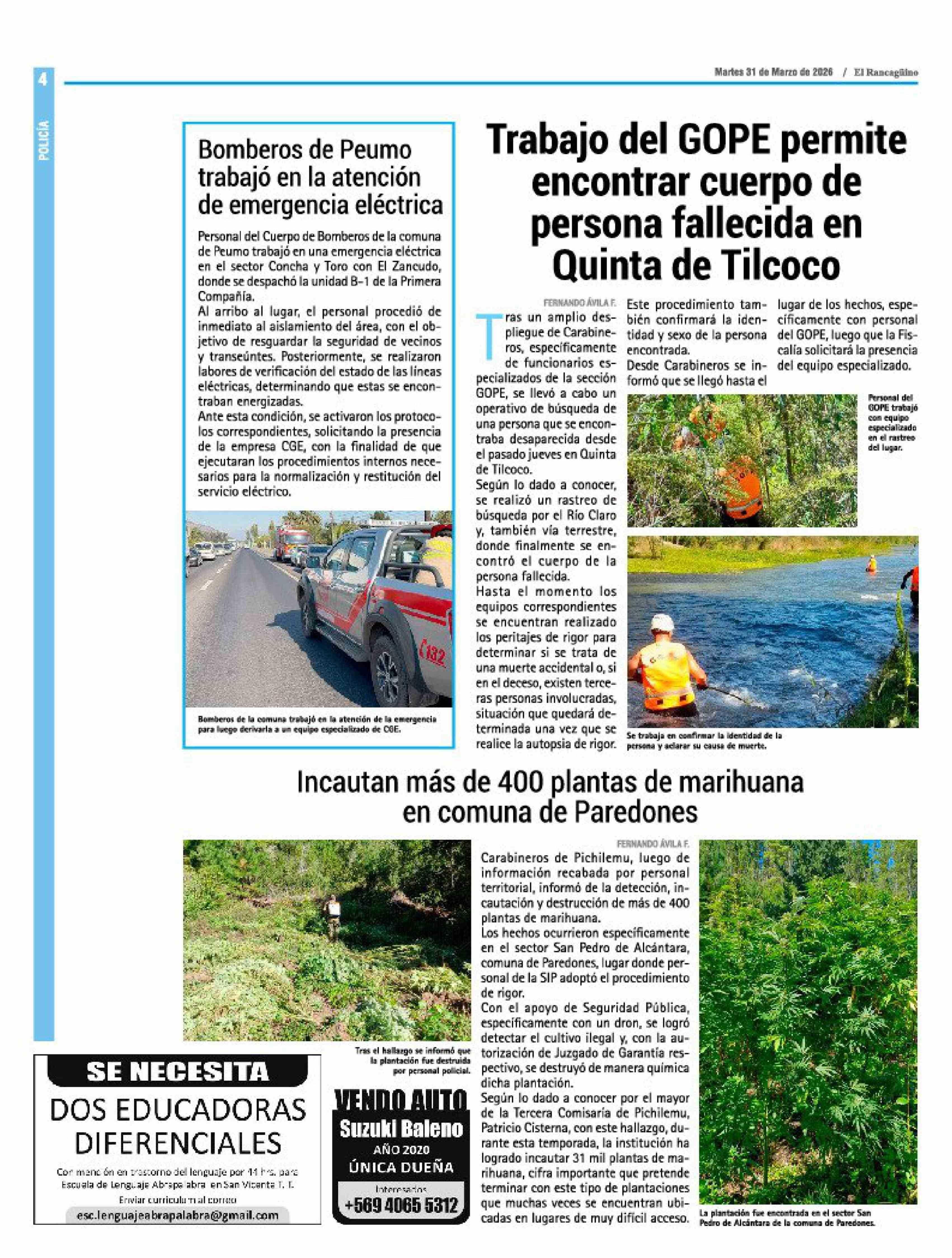 | Fecha: | 31-03-2026 | Sector: | Noticia general | Región: | Región del Libertador General Bernardo O'Higgins |