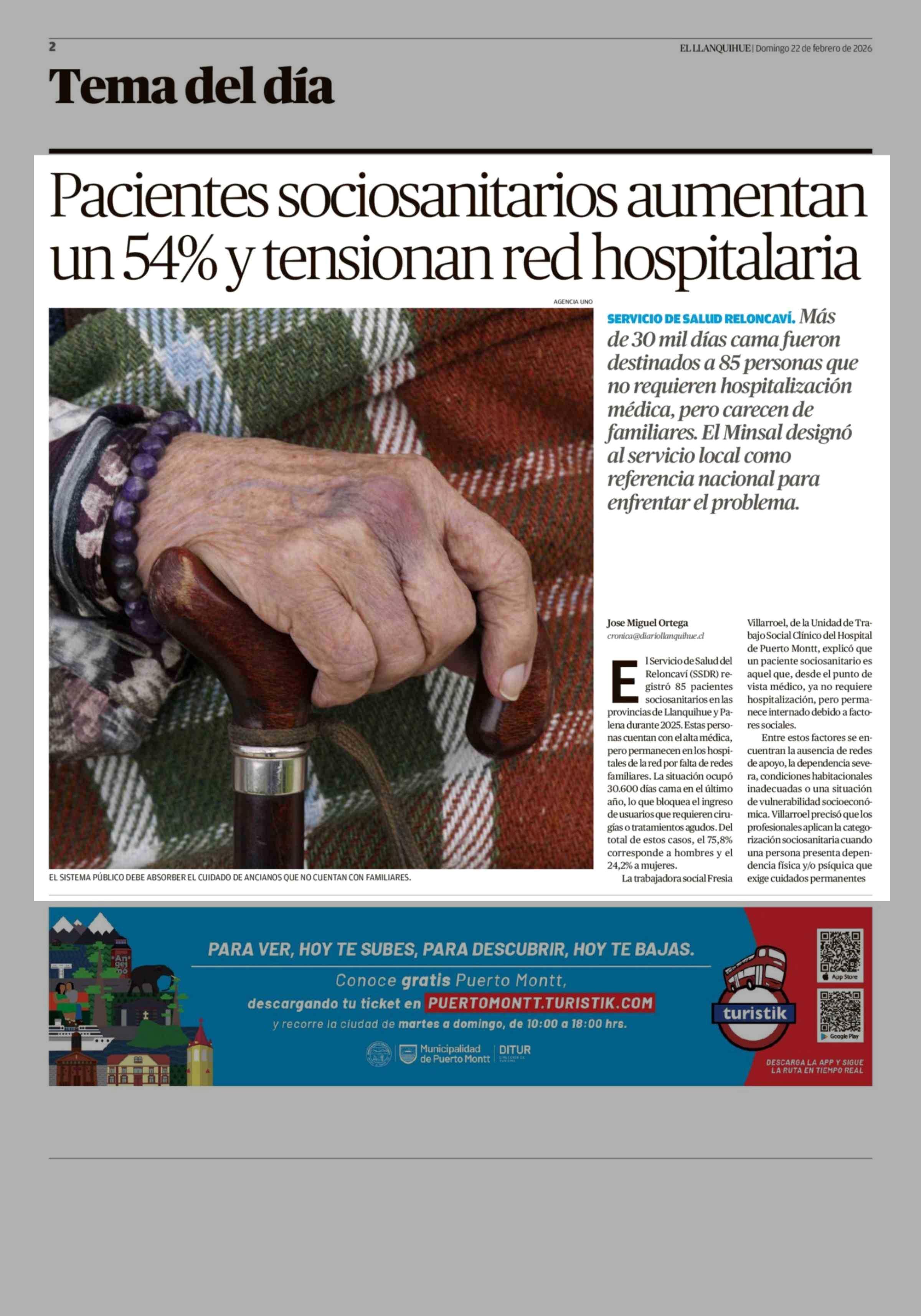 Título: Pacientes sociosanitarios aumentan un 54% y tensionan red hospitalaria