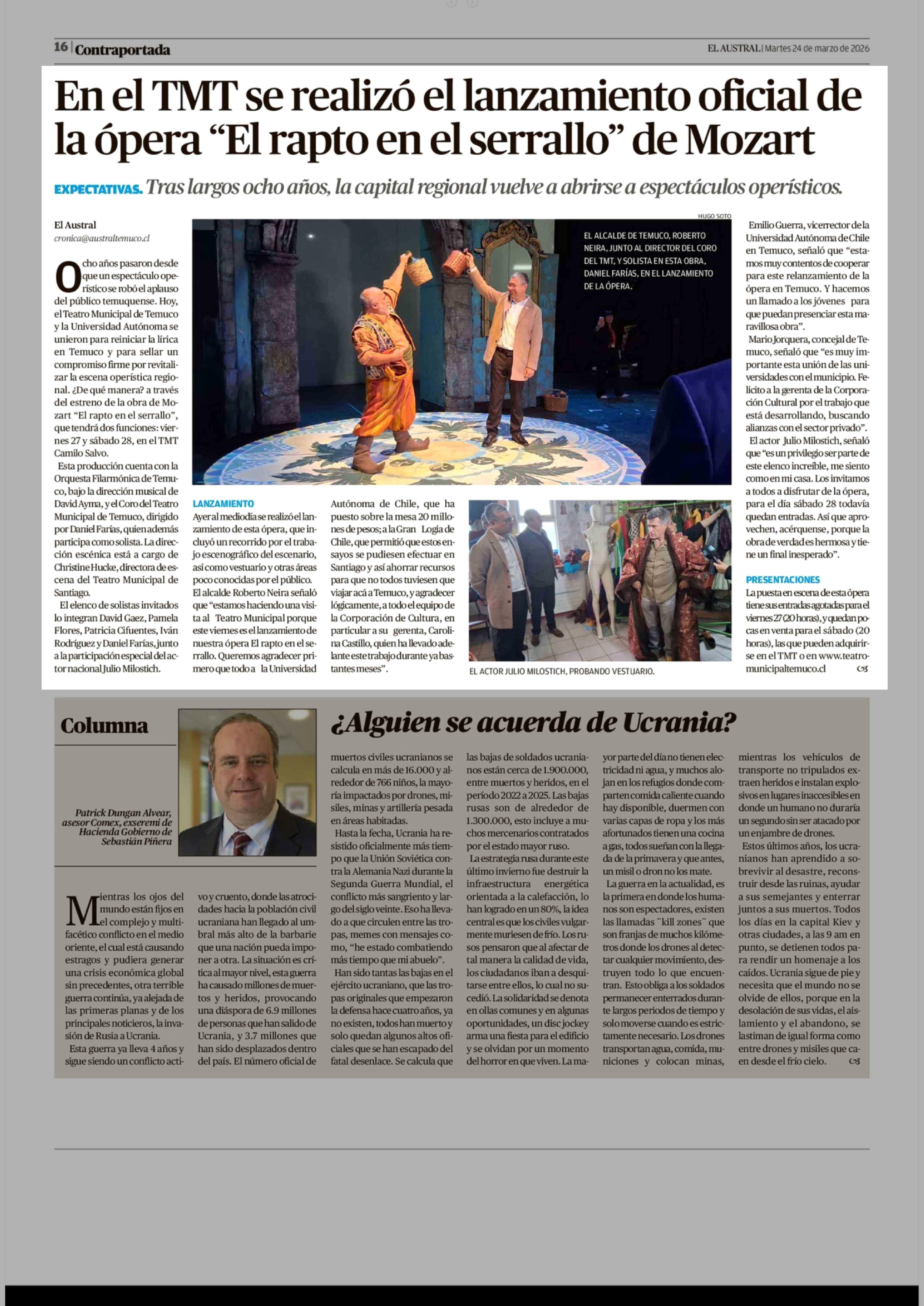 En el TMT se realizó el lanzamiento oficial de la ópera "El rapto en el serrallo" de Mozart 24-03-2026 El Austral de la Araucanía |