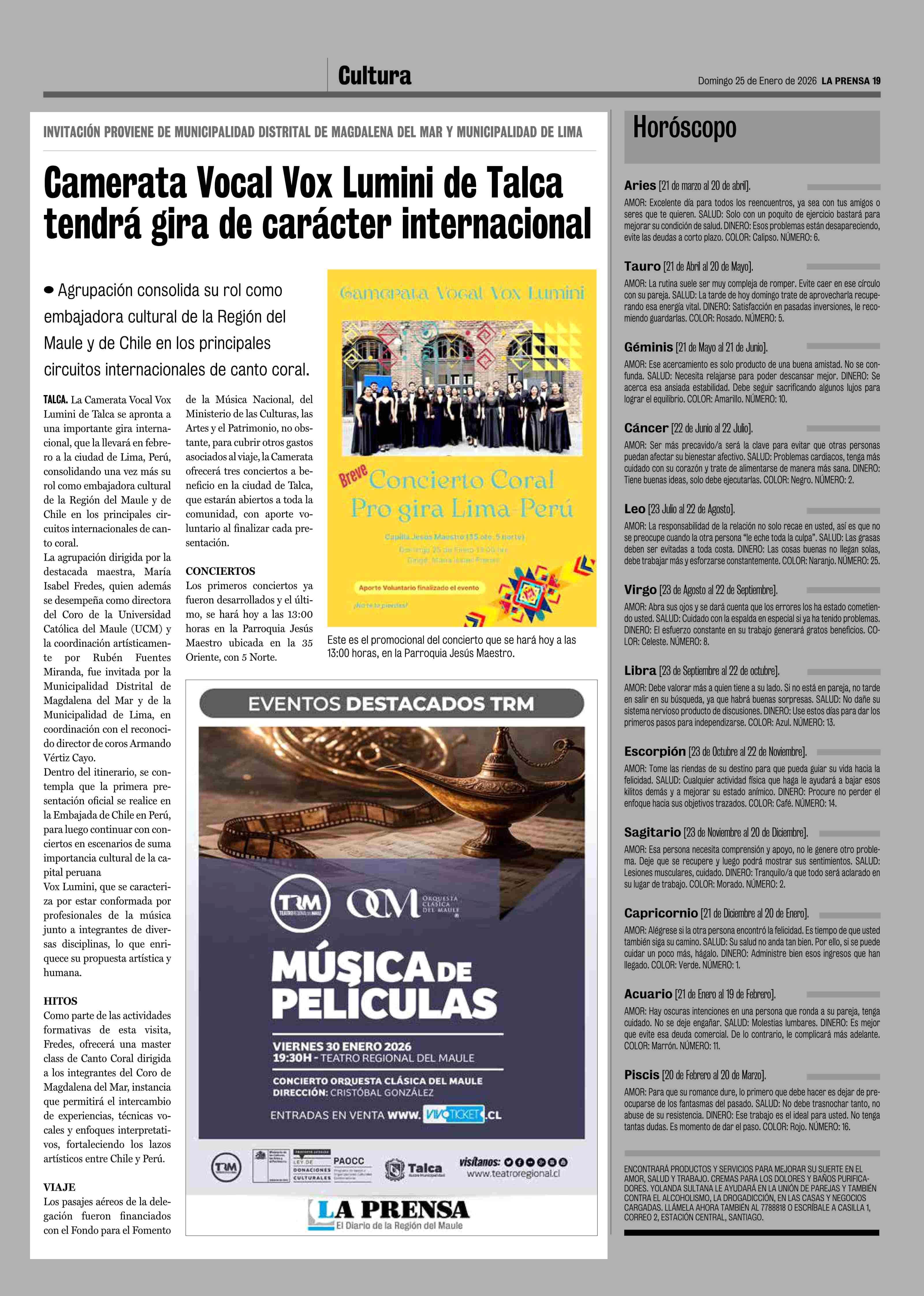 Camerata Vocal Vox Lumini de Talca tendrá gira de carácter internacional 25-01-2026 La Prensa de Curicó |