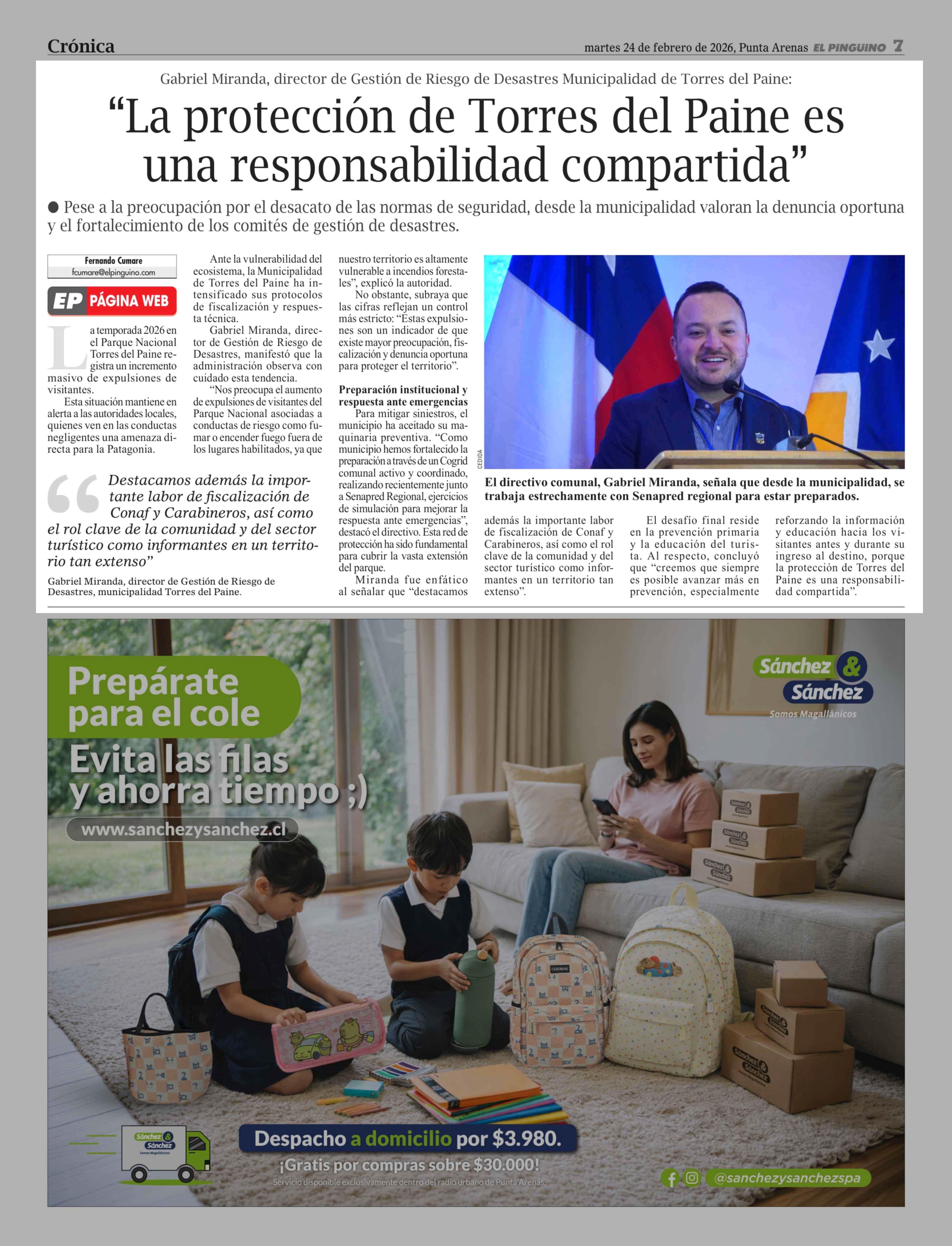 "La protección de Torres del Paine es una responsabilidad compartida" 24-02-2026 El Pingüino |