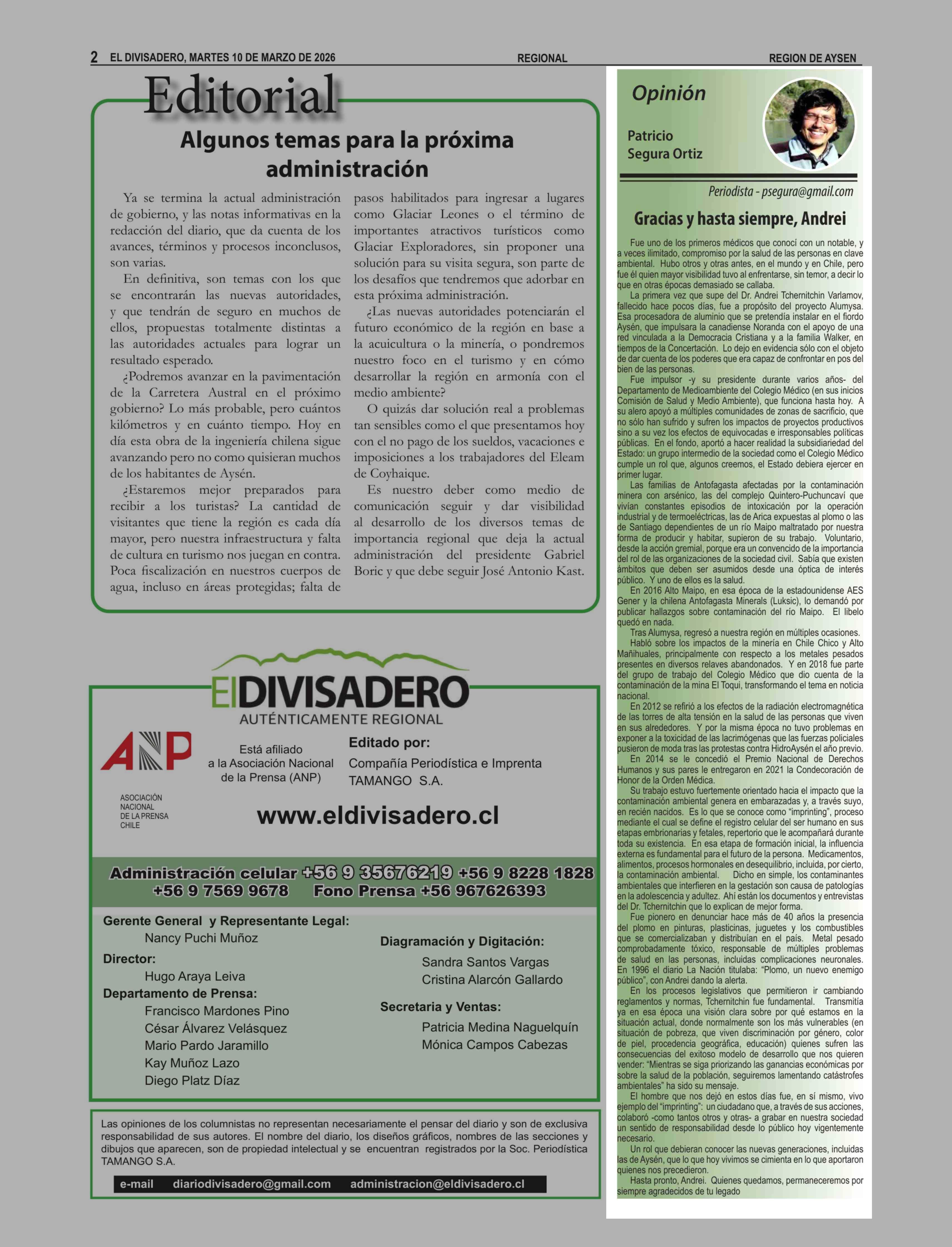 Columnas de Opinión: Gracias y hasta siempre, Andrei 10-03-2026 El Divisadero |